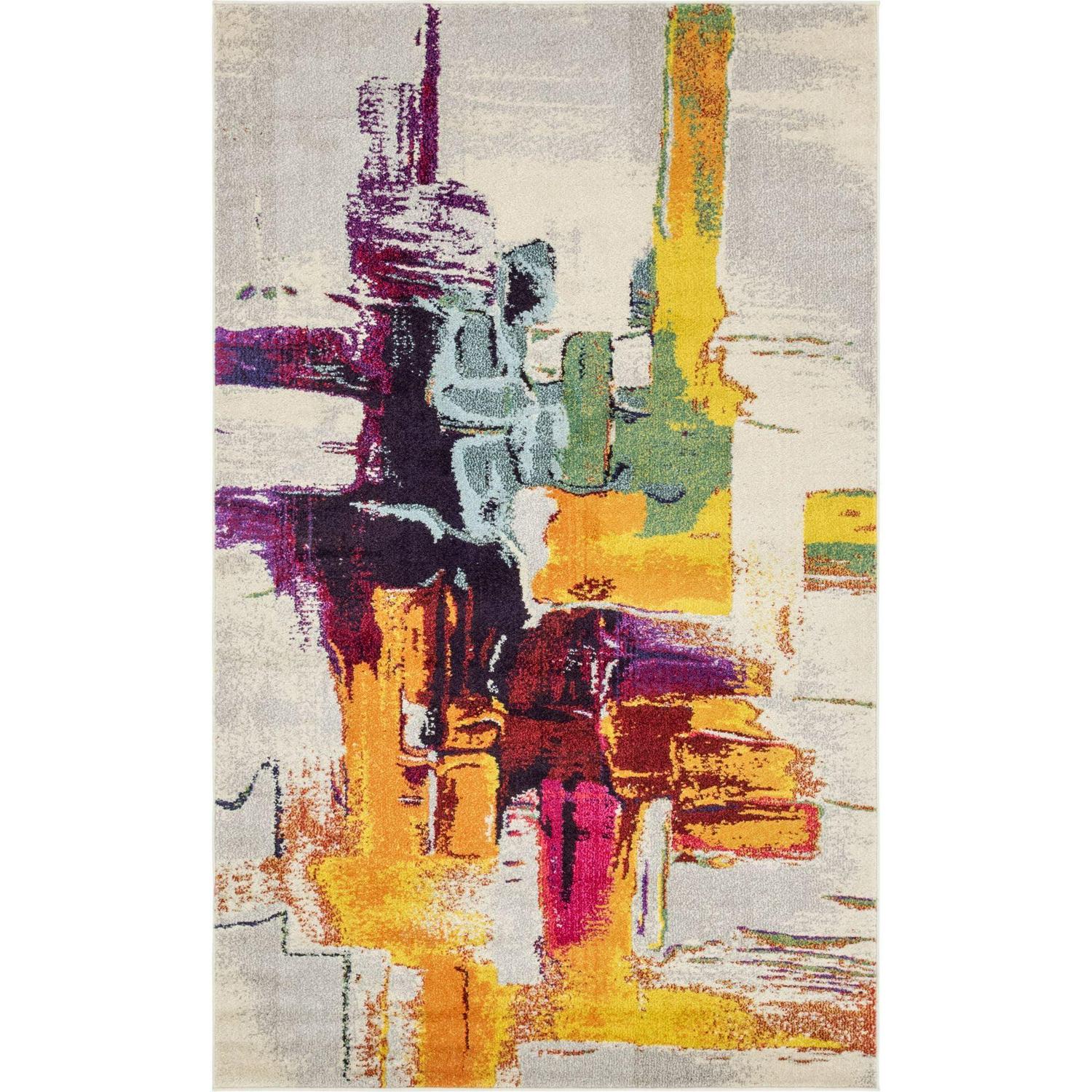 Unique Loom Regis Estrella Rug Beige/Orange 5′ 1 x 8′ Rectangle Abstract Modern Perfect For Living Room Bed Room Dining Room Office