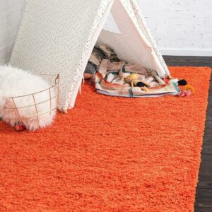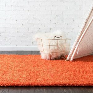 Unique Loom Solid Shag Rug Tiger Orange 6′ 1 x 9′ Rectangle Solid Modern Perfect For Living Room Bed Room Dining Room Office