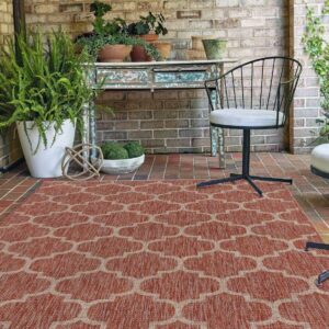 Unique Loom Trellis Indoor/Outdoor Trellis Rug Rust Red/Ivory 5′ 3 x 8′ Rectangle Geometric Modern Perfect For Patio Deck Garage Entryway