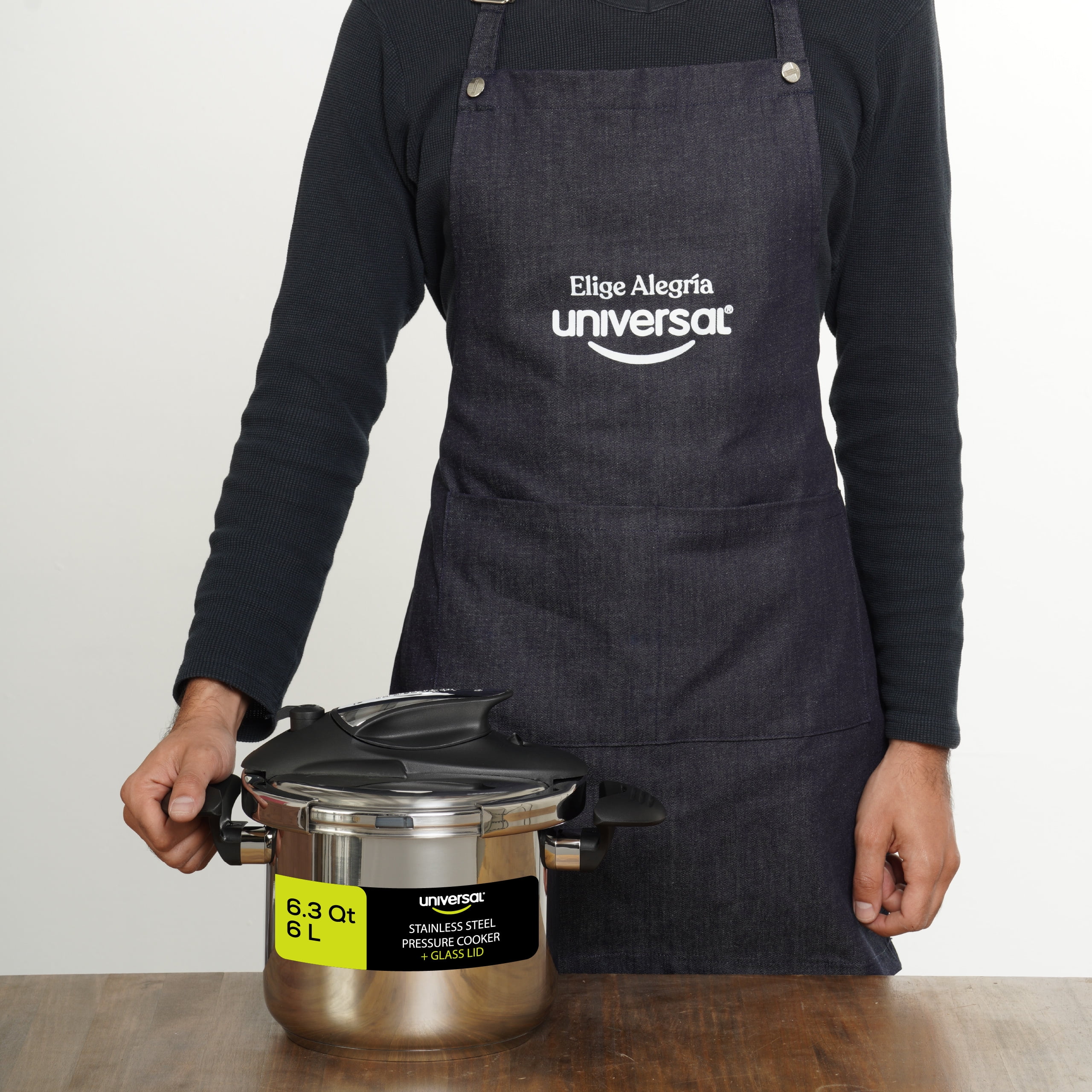 The stainless steel pressure cooker 7 servings – 6.3 Qt / 6L by Universal is the easy-to-use version of our traditional pressure cooker. Manufactured with ergonomic and heat-resistant handles for a better grip and sturdy construction to support and assure stability, it is equipped with (4) different safety and pressure relief systems for any to cook safely. Turn it into a pot easily thanks to our second lid include it. Suitable for vitro-ceramic, gas burner or gas stove, electric stove or burner, and induction stoves.