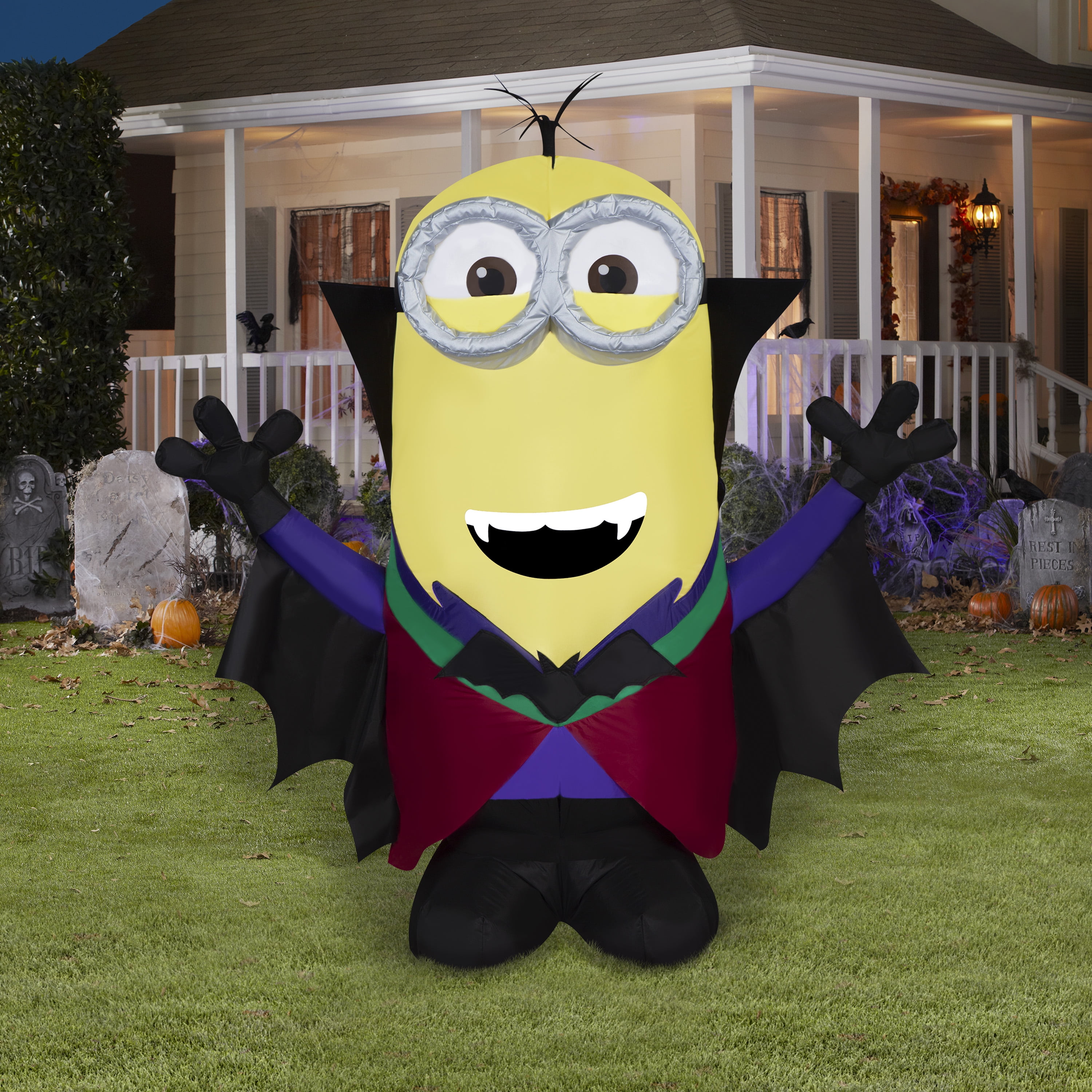Boo! Minions and Despicable Me fans will love this Universal Halloween Minion Kevin Airblown Yard Inflatable. Decked out in a vampire costume, our Kevin Minions inflatable makes a spooktacular addition to your Halloween decorations. Set up is in a snap for the easiest decorating ever. Just plug it in, stake it down, and watch the magic unfold. Display this Minions Halloween decoration as a standalone or combine it with other Airblown Inflatables to create a custom scene.