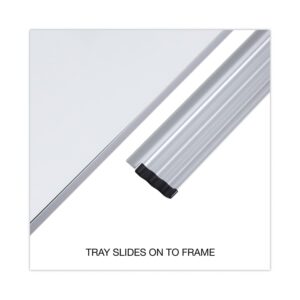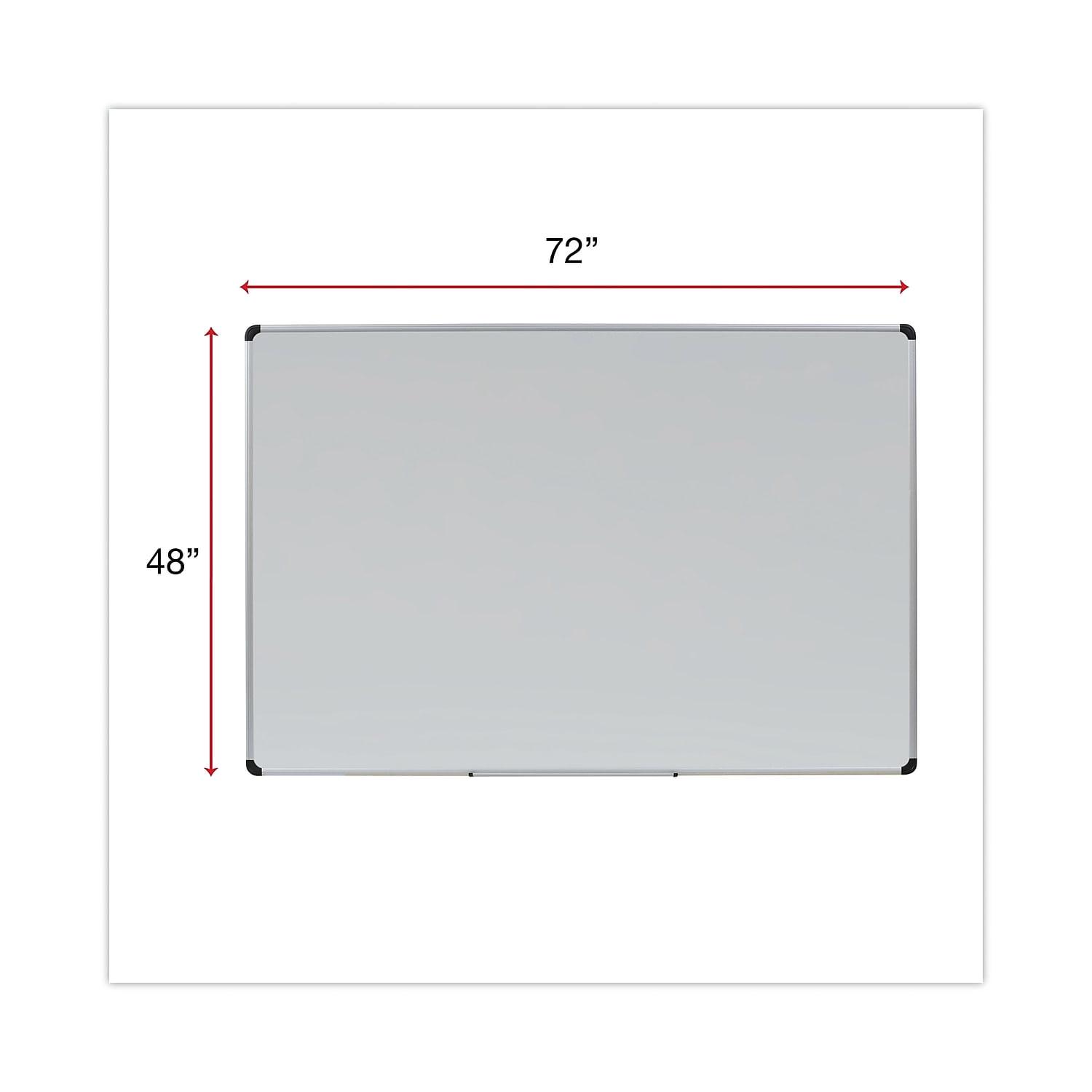 Sleek and practical, this board is indispensable in office or home. . Quality write-on/wipe-off surface accepts all dry erase markers. . . Marker tray included. . Board Type: Dry Erase; Board Width: 72″; Board Height: 48″.