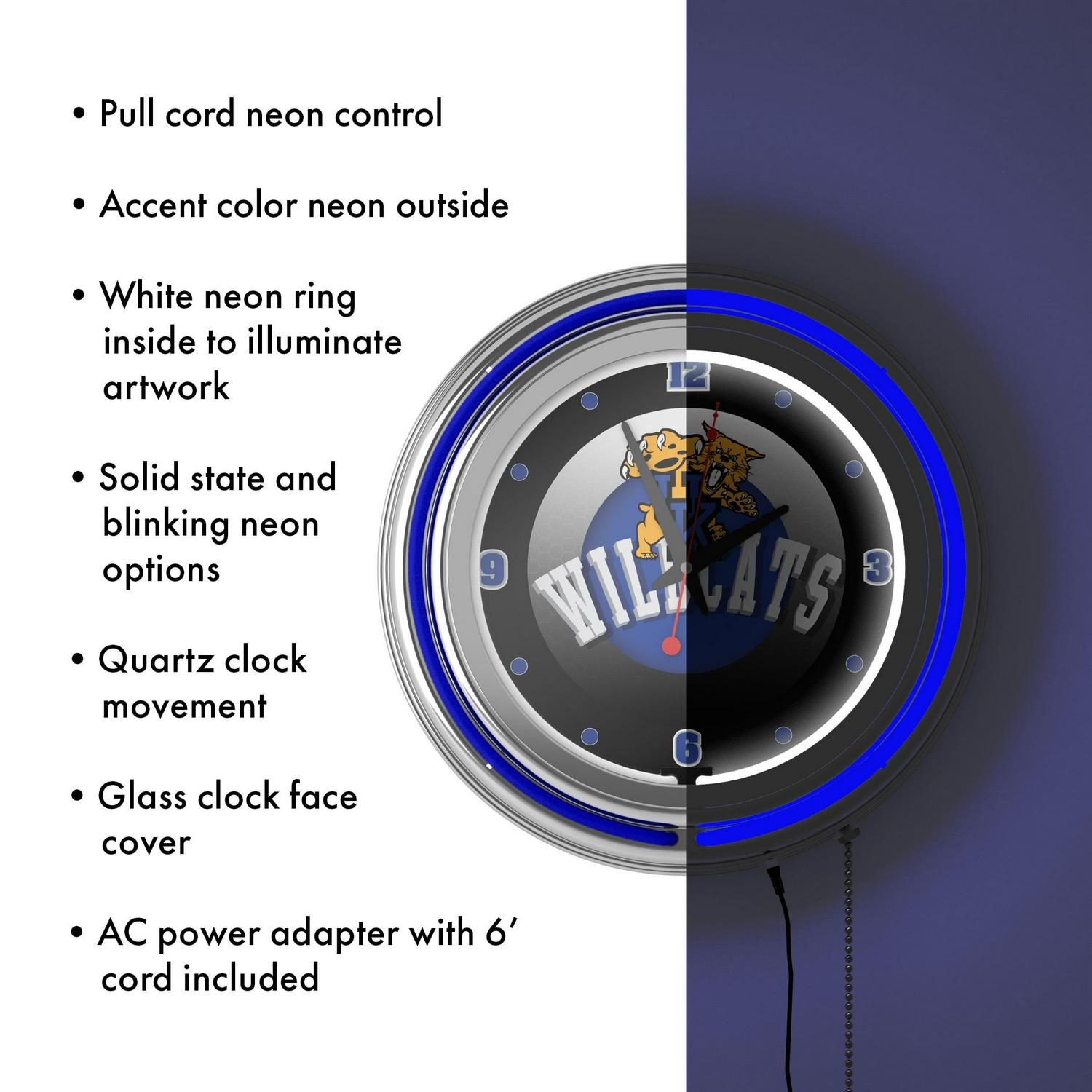 University of Kentucky Wildcats Chrome Double Rung Neon Clock – HC