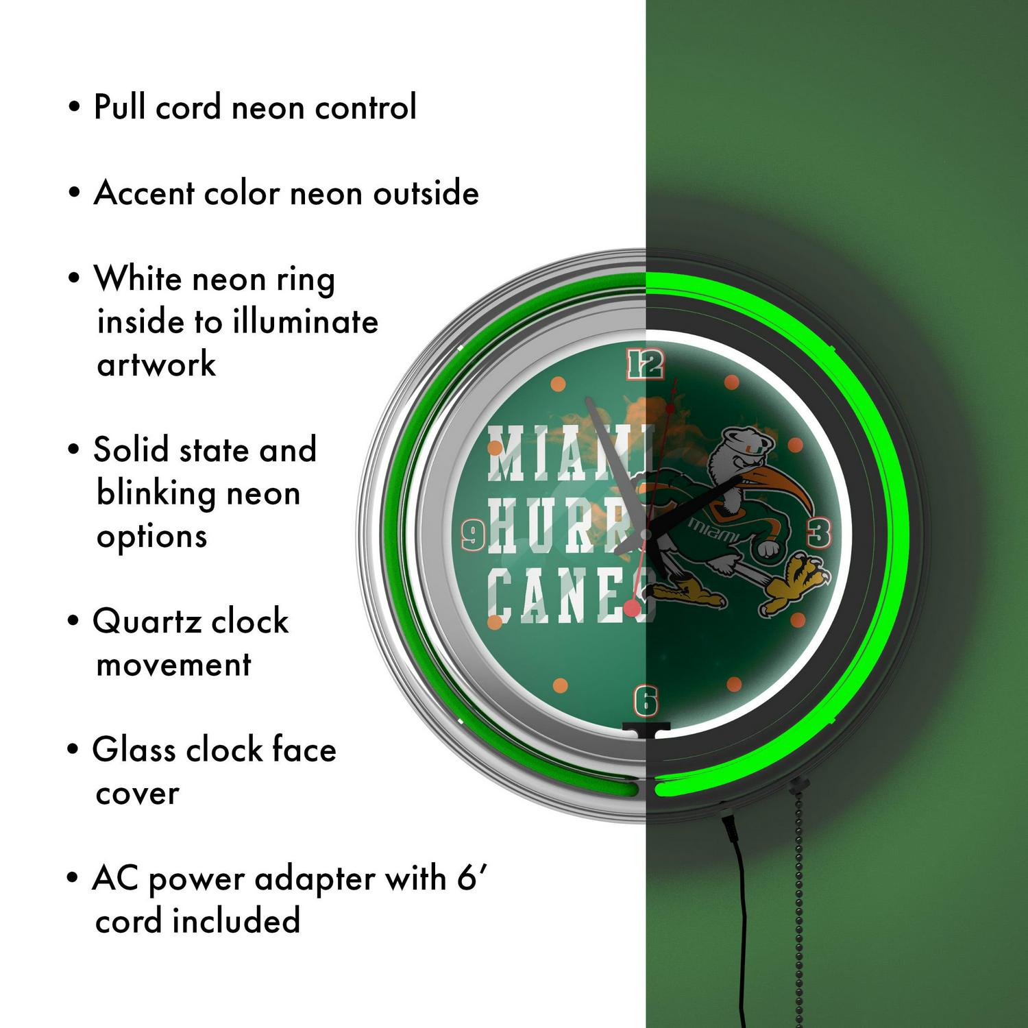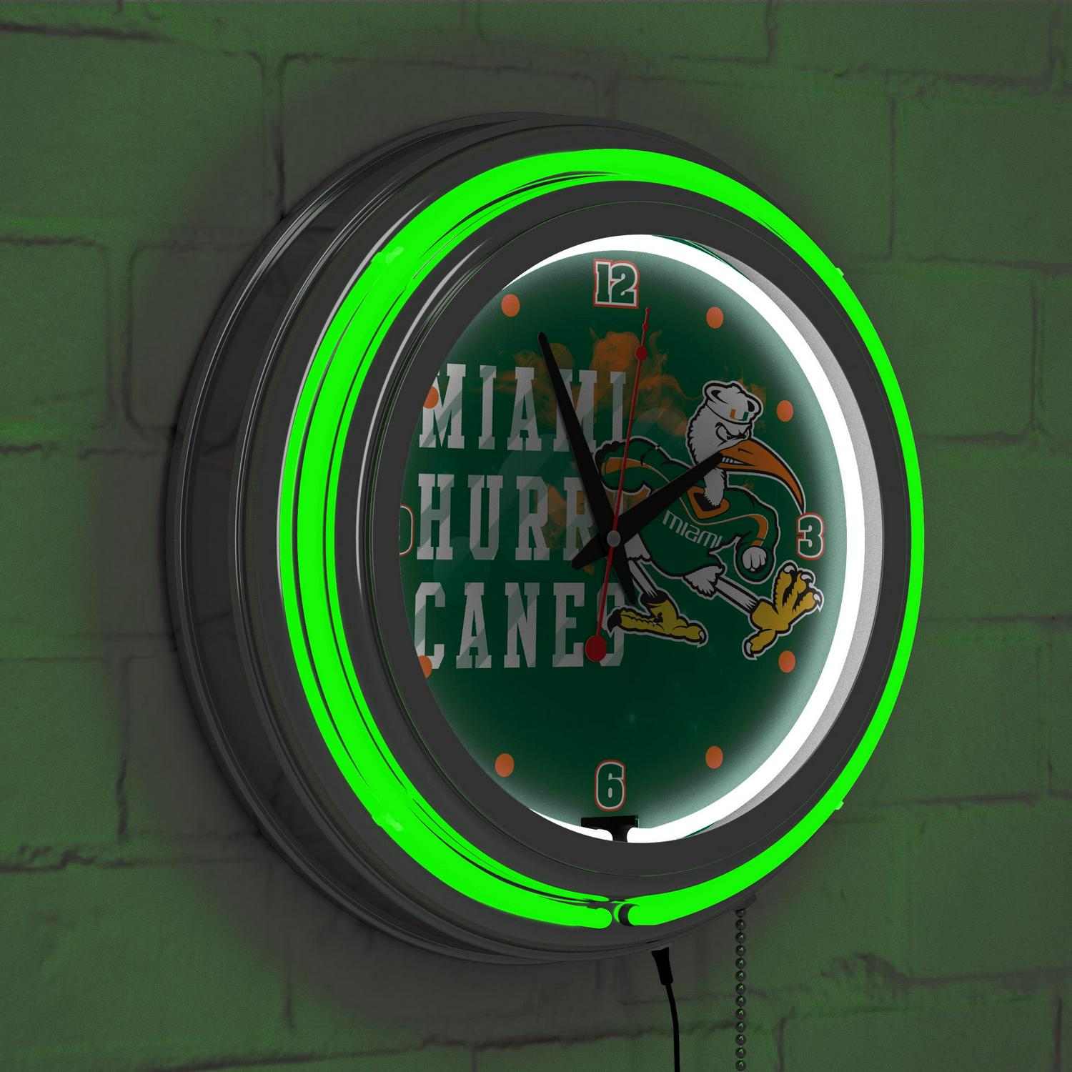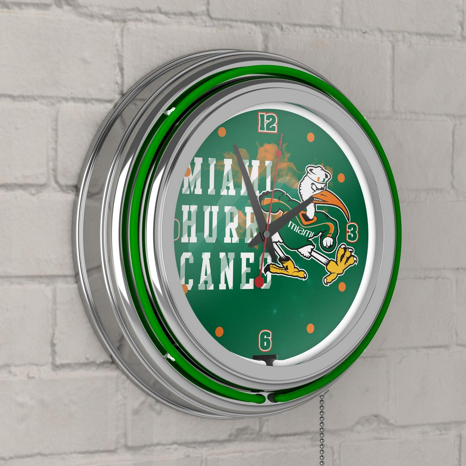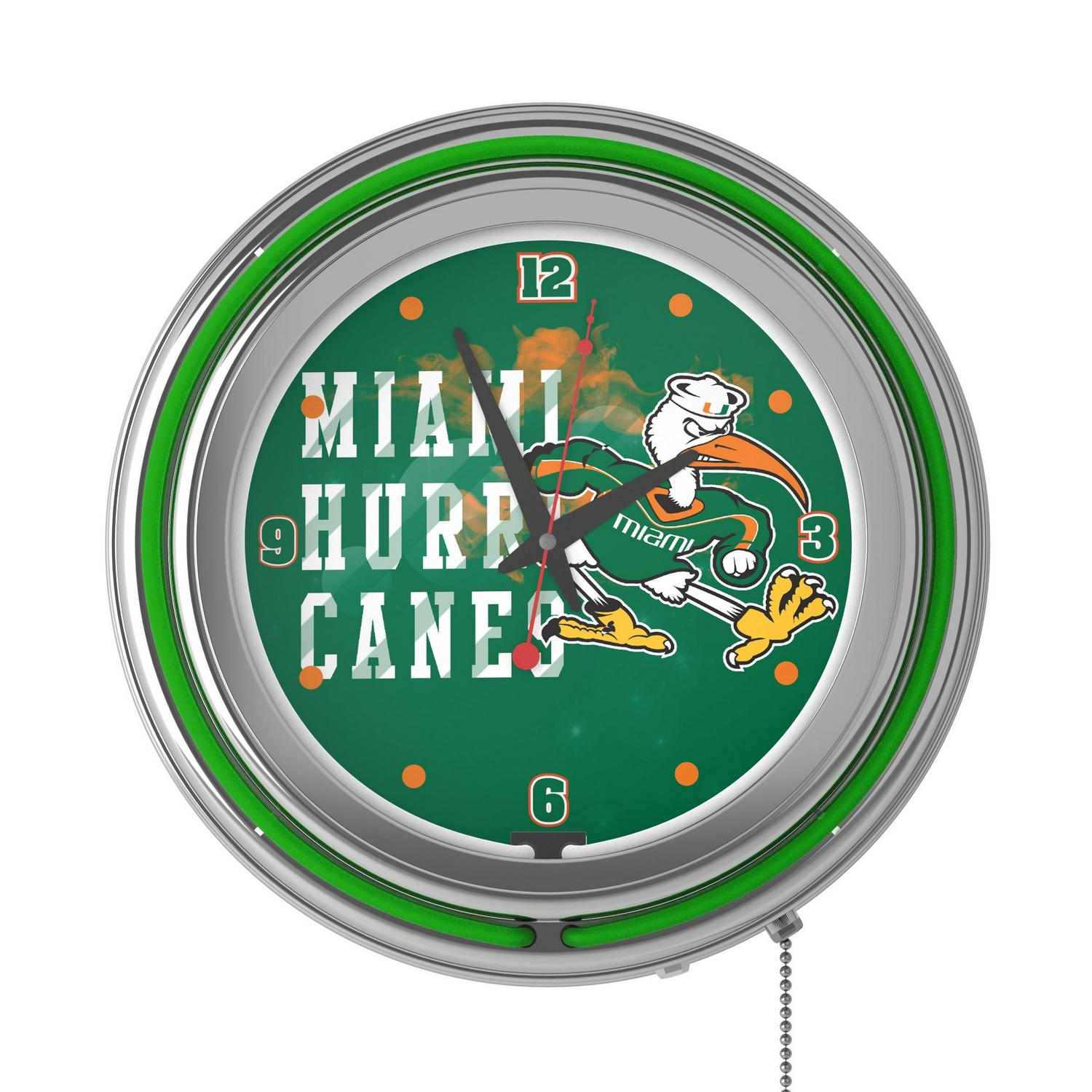 University of Miami Chrome Double Rung Neon Clock – Smoke