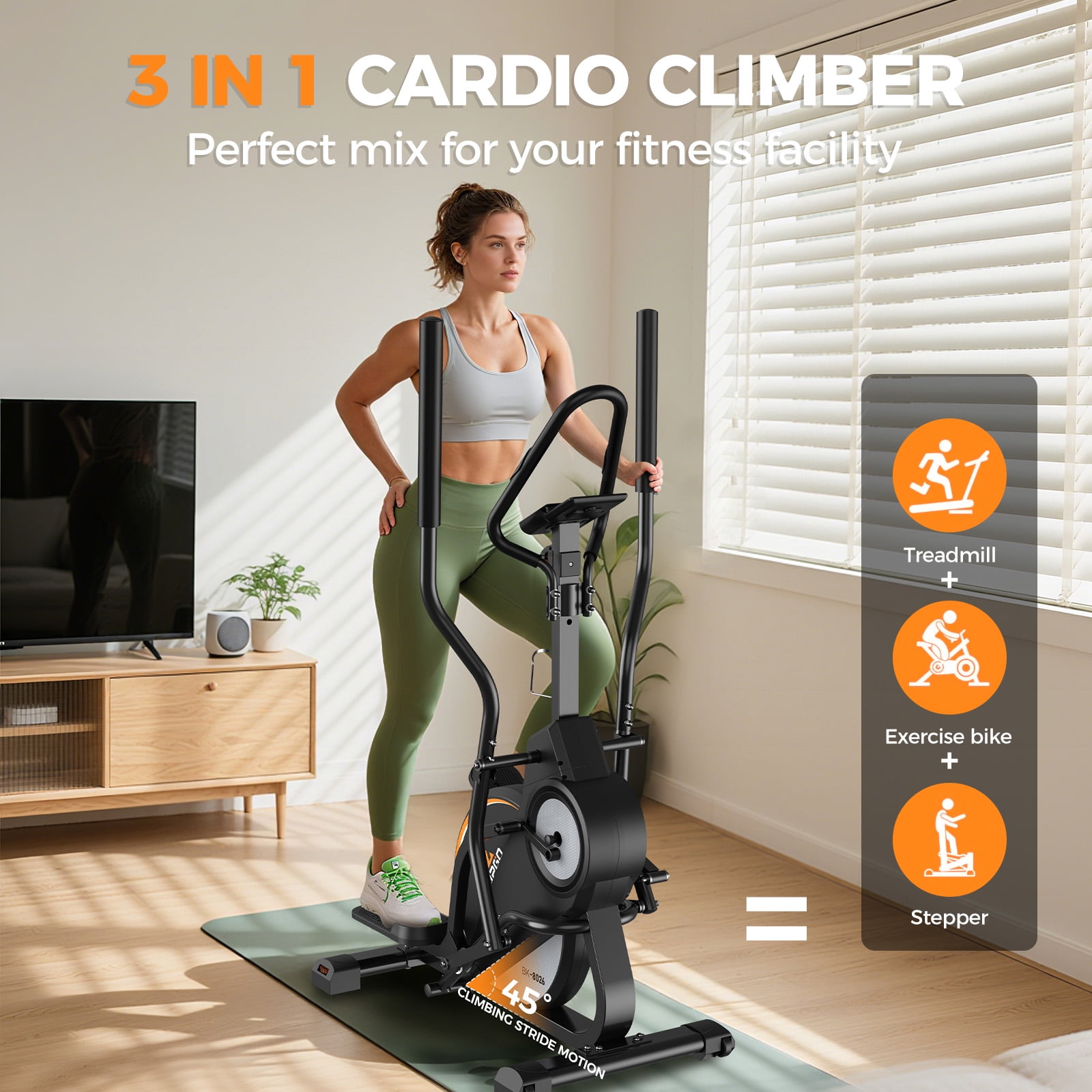 UPGO Pro Cardio Climber Stepping Elliptical Machine, 3 in 1 Elliptical, Total Body Fitness Cross Trainer with Hyper-Quiet Magnetic Drive System