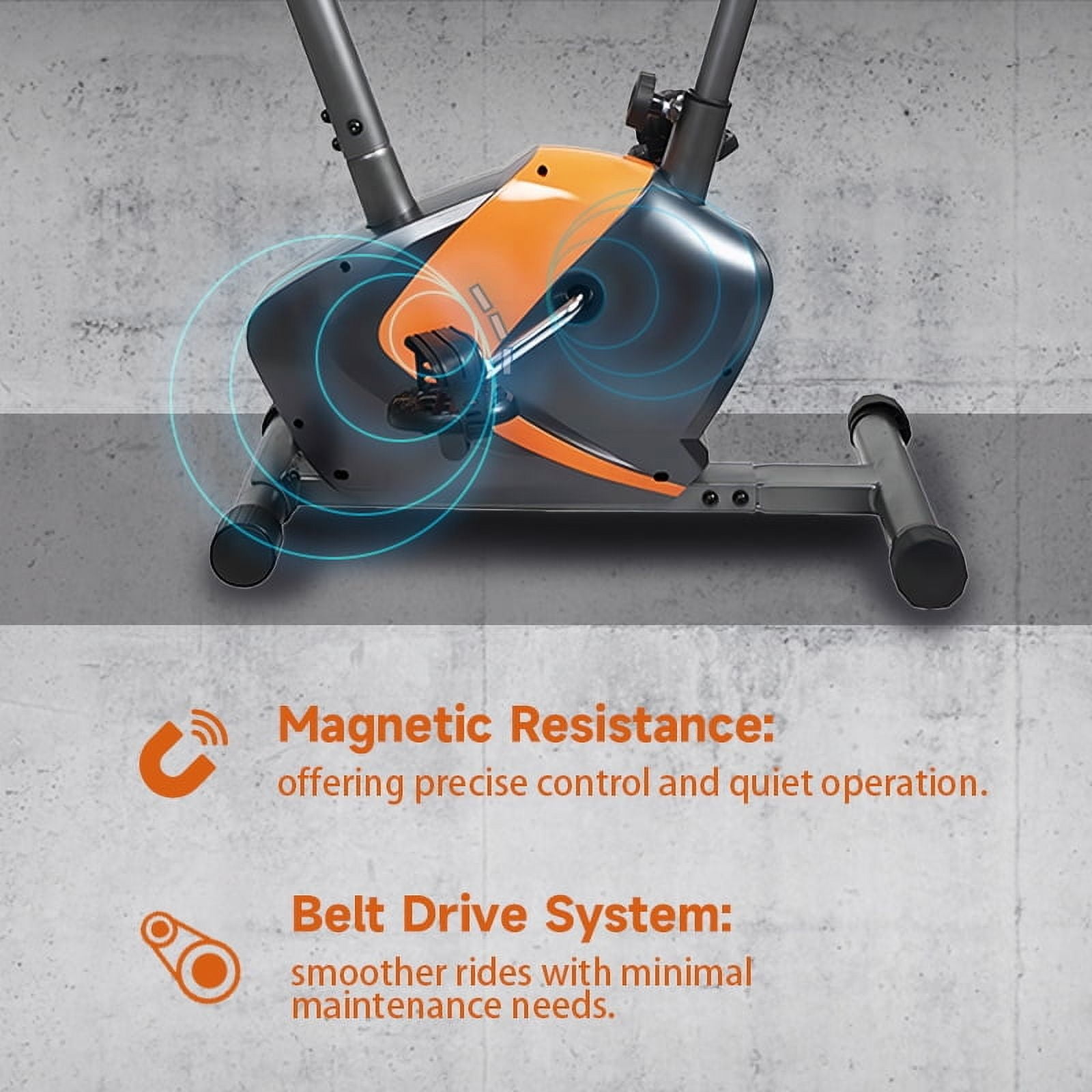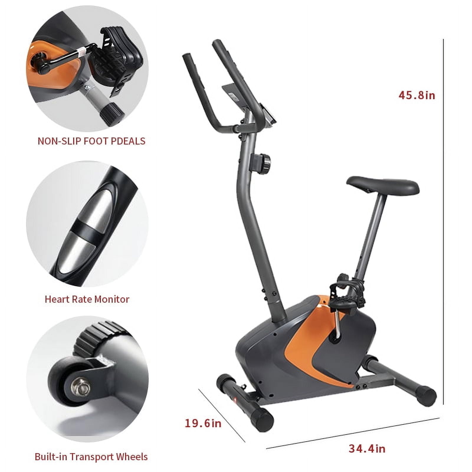 【Choose UPGO】Design and produce top-quality exercise machines for home use for over 20 years. UPGO has chosed by more than 3,000,000 families and we will always stand behind our product. We promise free returns and refunds within one month, and two years for replacement parts. Multifunctional Display Screen + Heart Rate Handle: Equipped with a high-definition multifunctional display screen that shows real-time data such as time, speed, distance, calories burned, and heart rate. The heart rate handle allows you to monitor your pulse to optimize your workout intensity. Adjustable Seat (31.5-38.1 inches): Customize your riding position with the easily adjustable seat, accommodating heights from 31.5 to 38.1 inches, ensuring a comfortable and ergonomic fit for all users. 8-Level Adjustable Magnetic Resistance: Tailor your workout intensity with the 8-level magnetic resistance system, allowing for smooth transitions and varied training sessions, whether you’re aiming for a light warm-up or a more challenging ride. Convenient Transport Wheels: Effortlessly move your bike from room to room with the built-in transport wheels, making it easy to store and reposition without any heavy lifting or strain. Durable Steel Frame Construction: Enjoy a stable and secure ride thanks to the bike’s durable steel frame, designed to support up to 350 lbs, ensuring long-lasting use and reliability for all your fitness goals.