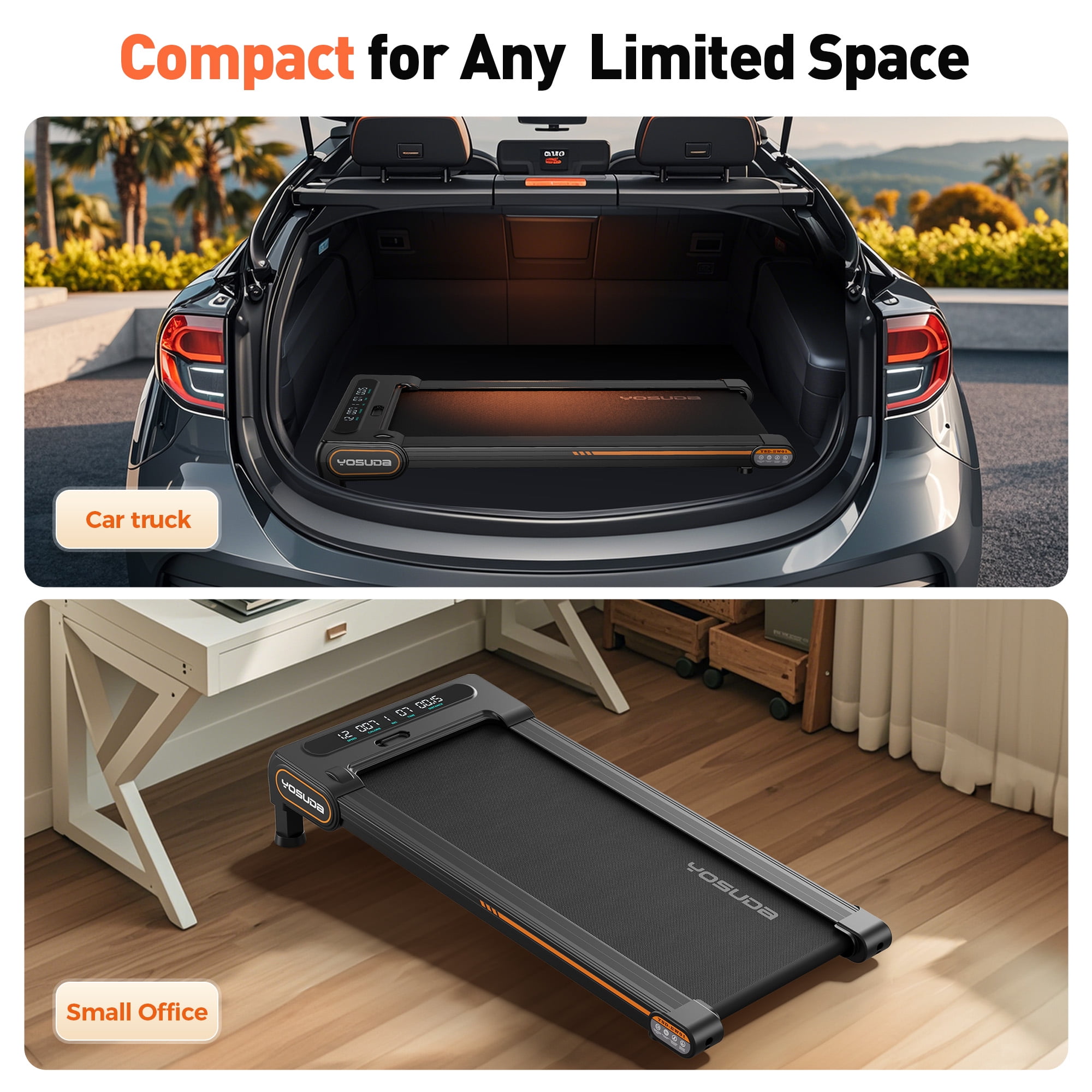 【Silent Efficiency】Experience the silent power of our walking pad treadmills, equipped with an advanced 2.5HP motor. Smooth and quiet, they ensure your work or online meetings remain undisturbed while you stay active. 【Robust and Comfy】Our under desk treadmill, made with premium polymers and steel, supports 350LBS effortlessly. Its 42.5″ X 16.9″ belt with 6-layer belt provides excellent knee protection and a freely walking workout. 【Enhanced Visibility】With larger LED screen, our walking pad ensures easy reading of your fitness data. See all your stats at once, without the hassle of switching screens, for a streamlined workout. 【Seamless Workout Pause】Pause your session anytime without losing your stride. Our treadmills remember your progress, ready to resume right where you stopped. Note: Data resets to zero once turn the walking pad off. 【Customer-Centric】Our commitment to you: a month for returns, free walking treadmill replacement parts for two years, and 24/7 support. Your satisfaction is our priority.