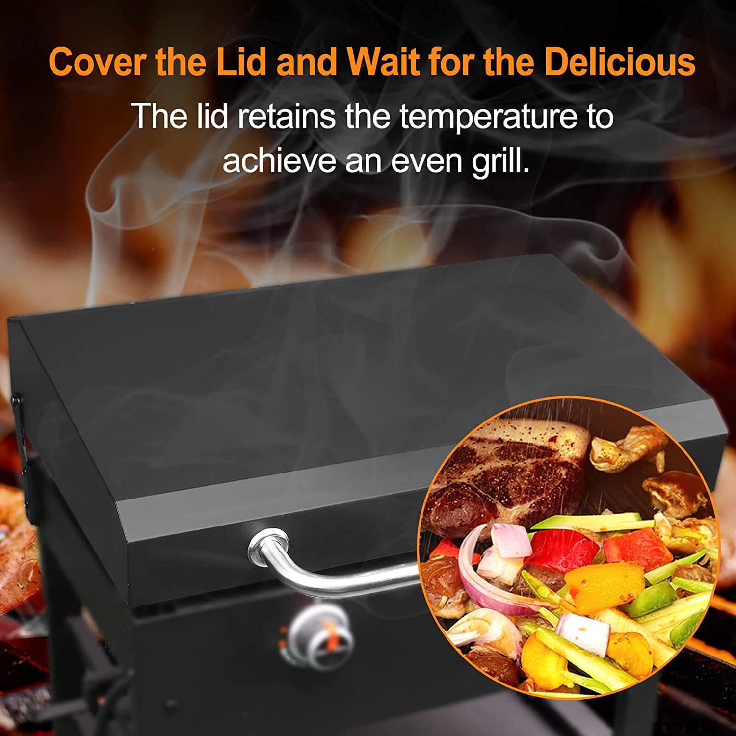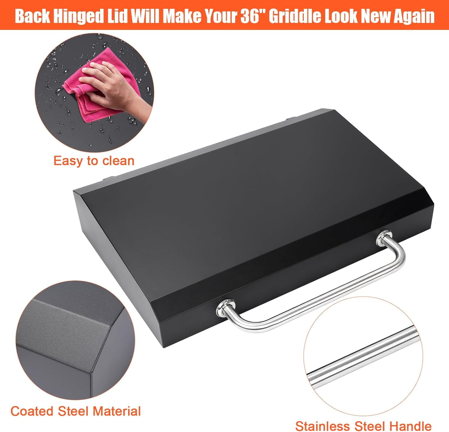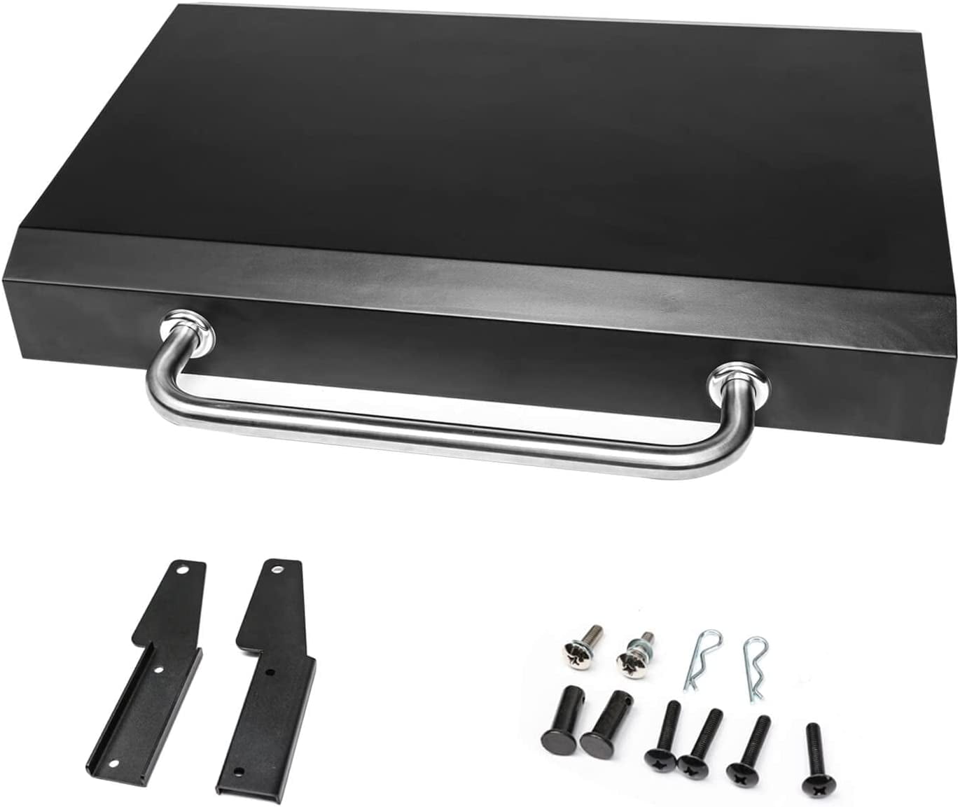 Perfect Fit: Hinged lid For Blackstone 28-inch griddle without lid. Griddle lid for Blackstone 28-inch flat top grill, such as model 1517,1853,1605,1803,1839,1856,1885,1924,1983,2094,2145 Material: This lid is made of high-quality steel to ensure long-lasting use and sprayed with high-temperature resistant black powder coating, generous and beautiful while ensuring durable performance Protection: Protect the griddle surface from rain, dust, dead leaves, and other bad influences Retains Heat: Cover and retain heat during cooking for faster cooking times. Covering the hinged lid also prevents grease splatter Act As a Wind Guard: When fully open, ideal for blocking the wind blowing towards the griddle area to prevent heat loss Hinged Lid: Lid with hinges for easier opening and closing. The maximum opening angle can be up to 90 degrees, which will not affect your grill at all Durable Handle: This comes with a handle for easy lifting and closing. Easy to access your griddle surface. Package: 1 x Griddle Lid, 1 x Handle, 2 x Support Brackets, and a set of screws