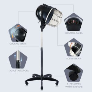 Upgraded CO-Z Professional Salon Standing Bonnet and Hood Hair Dryer, 1300 Watts, Black