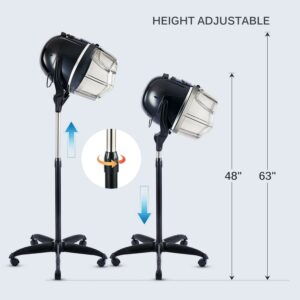 Get the Right Height & Angle: This standing hair dryer for hair salons and home use easily adjusts from 50″ to 63″ in height and offers smooth 360° rotation for the hood to ensure your comfort while drying hair.