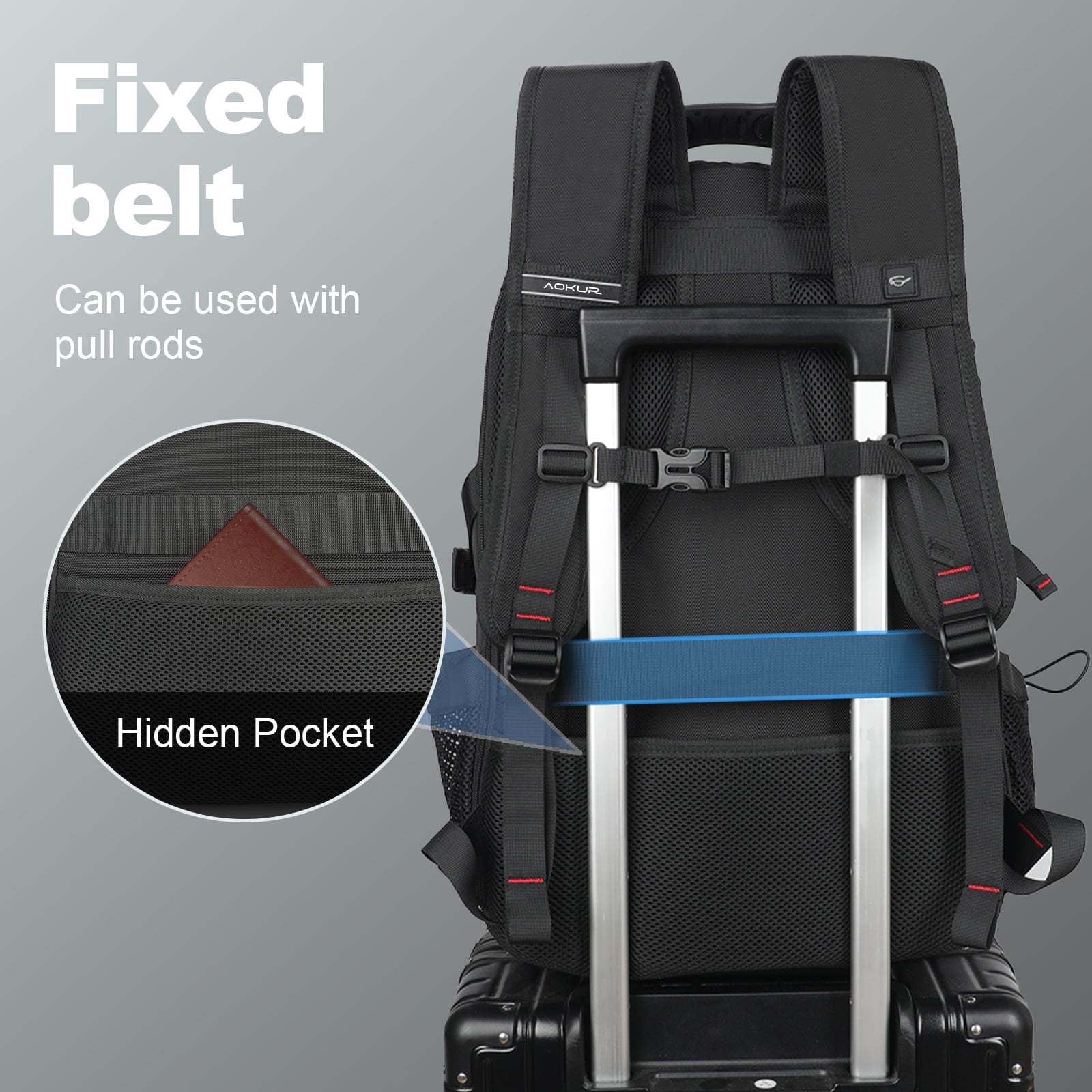 Please kindly noted that this item is sold by third-party sellers from Joybuy marketplace. Aokur carry on backpack with USB charging port for men and women, 50L expandable large travel backpack airplane approved black travel backpack, anti-theft water resistant lightweight daypack for flight. Multi-functional laptop backpack with a seperate shoes compartment, hidden anti-theft pocket, TSA friendly padded laptop compartment, a luggage strap on back, a side 180 degree open zippered pocket built-in wet dry seperate pocket for travel toiltries, the outter reinforced strips and metal D shapped buckle for hanging travel gears or sports gym accosseries. Durable sturdy carry on backpack made of high density polyester fabric, nylon lining and strong buckles. Features with wider padded straps, decompression grip, adjustable chest straps and exterior side compression buckles, and an air-mesh ventilated back panel help to relieve pressure on your shoulder and neck for comfort and pressure reduction. This backpack is a practical gift for travelers and a thoughtful Christmas or New Year’s gift for parents or other loved ones. Constructure of Backpack ✔1 x TSA friendly padded Laptop compartment for up to 17.3″ laptops ✔1 x Large 50L main compatment with 1 zippered mesh pocket ✔1 x Seperate shoes compartment ✔1 x Side 180 degree open zippered pocket built-in seperated zipper wet&dry pocket, 3 different size open pocket, 2 pens slot,1 zipper mesh pocket and a keys knob. ✔1 x Outter zipper pockets ✔1 x Anti-theft zipper pocket on back of backpack ✔2 x Elastic side mesh pocket Specification Material: Polyester fabric and nylon lining, metal zippers and reinforced buckles, metal D shaped buckle Capacity: 50L Expandable: Enlarge more than 8L for storage Occasions: OUTDOOR/INDOOR activities and perfect for daily use, International flight travel, Business trip, Camping,Trekking, Weekend Getaway, Vacation, Overnight Trip Package: 1 x Travel Laptop Backpack Best Gift Choice for Men, Women, Mother, Father, Friends, Family gift for mother, gifts for people who travel, gifts for travelers men, traveling gifts, gifts for travel, travelers gift, gifts for traveling, gifts for men who travel for work, electronic gifts for men, travel gift ideas, gifts for frequent traveler, travel gifts for men, traveler gifts, travel accessories for men and women, geek gifts, travel gadgets for men, gifts for couples who travel, travel must have for men, best travel gifts, traveler gifts for men, gifts for man who travels, Gift for mom form daughter, Mother’s Day Gift, gift for dad, father day gifts from son, fathers day gifts for husband, dad gift, fathers day presents, cool gift for dad.