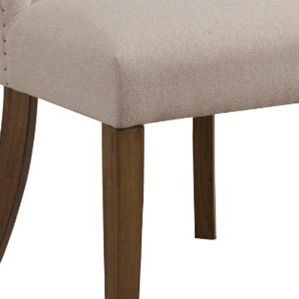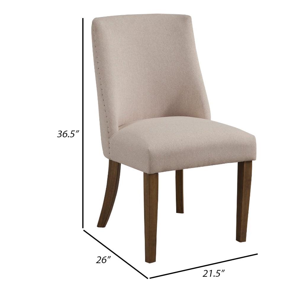 Upholstered Pine Wood Parson Chairs Set Of 2 Cream And Brown- Saltoro Sherpi