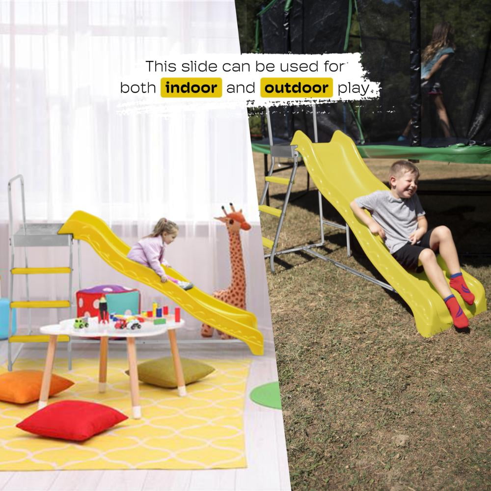 Machrus Upper Bounce Trampoline Step N Slide | Fun Indoor & Outdoor Ladder and Wave Slide Set – Perfect for Round or Rectangle Trampolines with or Without Net – Yellow