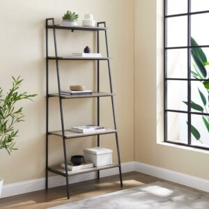 Urban Industrial 5-Shelf Ladder Bookcase, Grey Wash