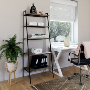 Urban Industrial 5-Shelf Ladder Bookcase, Grey Wash: