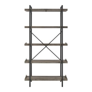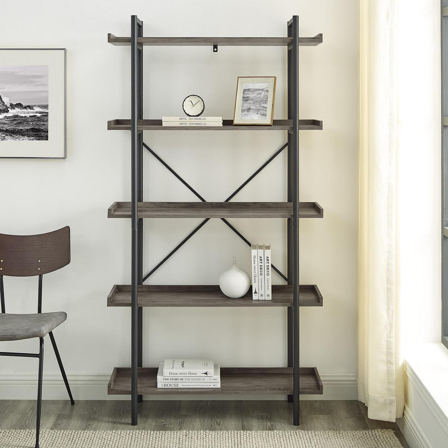 Flood your home with brilliant design and plenty of storage with the Urban Pipe Rustic Industrial Bookshelf. Five beveled shelves make this vertical shelf great for organization and display. Show off your growing plant collection or use this as a media tower where you can stack speakers, gaming consoles, and smart home devices. Use this as a classic bookshelf or keep it fresh by using it to show off your souvenirs. Whether you put this shelf in a bedroom, home office, or living room, you’ll be adding an industrial sensibility to your home while increasing your organizational options. This bookshelf also includes wall-fastening hardware for greater stability. Decorate your home with the Urban Pipe Rustic Industrial Bookshelf.The collection blends rustic farmhouse style with bohemian accents perfect for any season. This collection makes it easy and affordable to brighten up any room with cozy, vibrant, quality pieces.