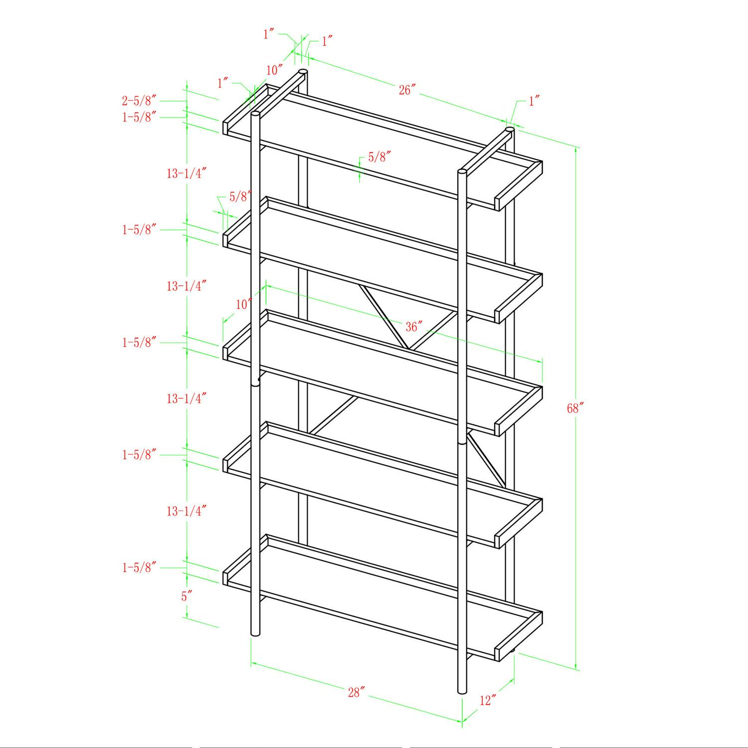 - Assembled Dimensions: 68″ H x 36″ L x 12″ W