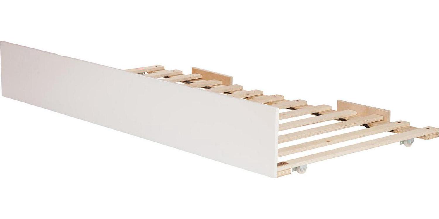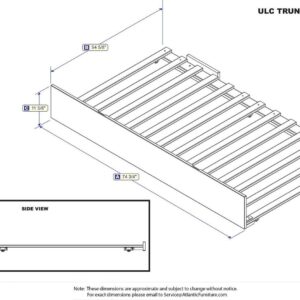 - Trundle can be positioned on either side of the bed and accepts up to an 8″ mattress