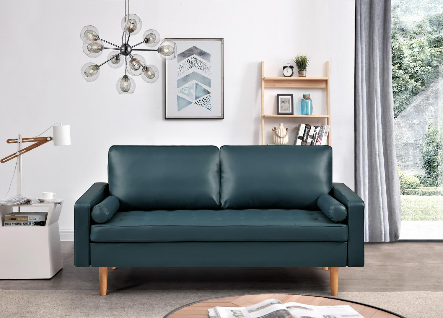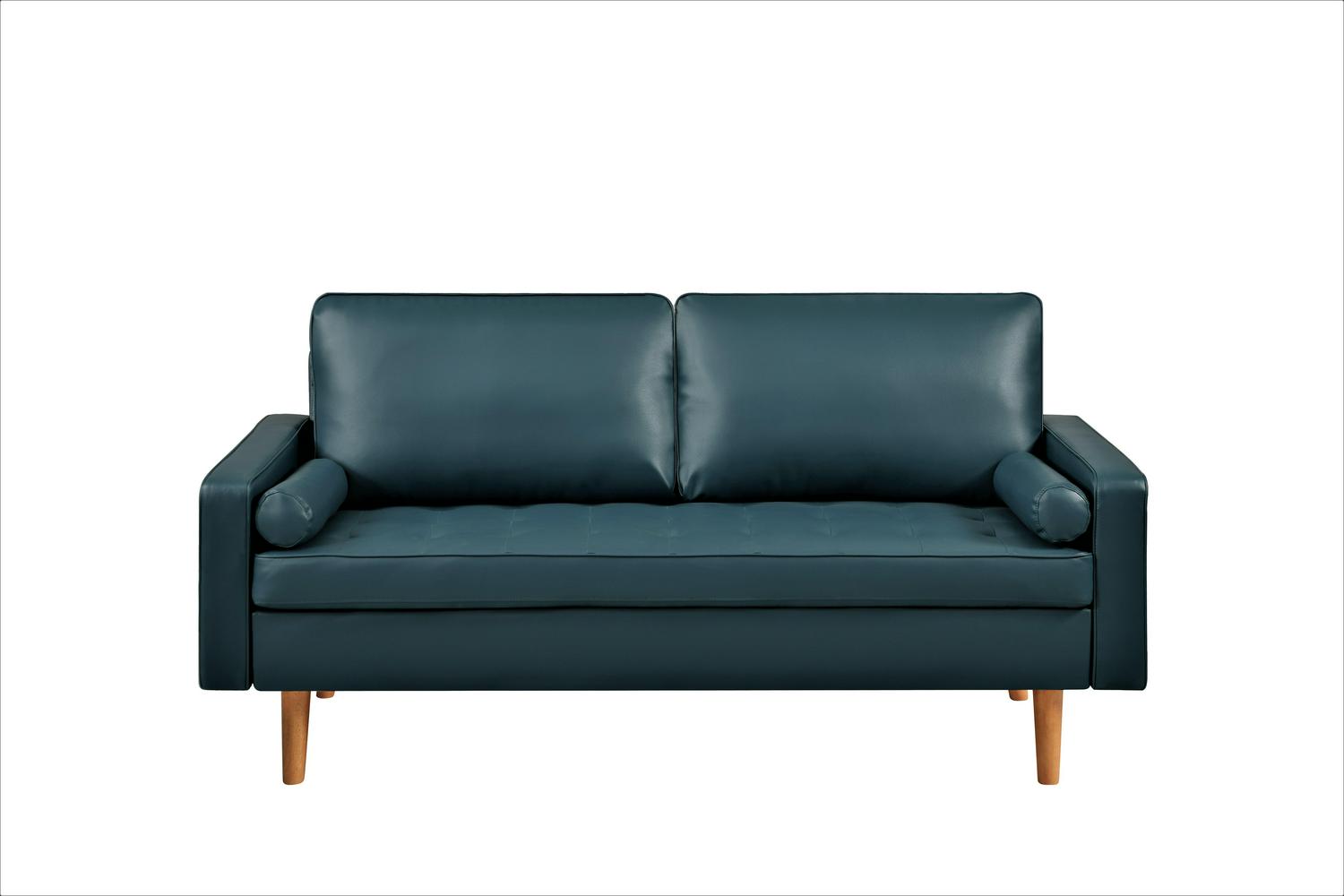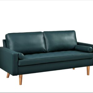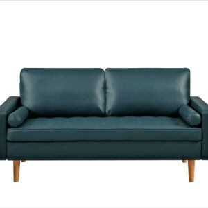 US PRIDE FURNITURE Partone 69.7” Vegan Faux Leather Square Arm Sofa -Dark Ocean Blue