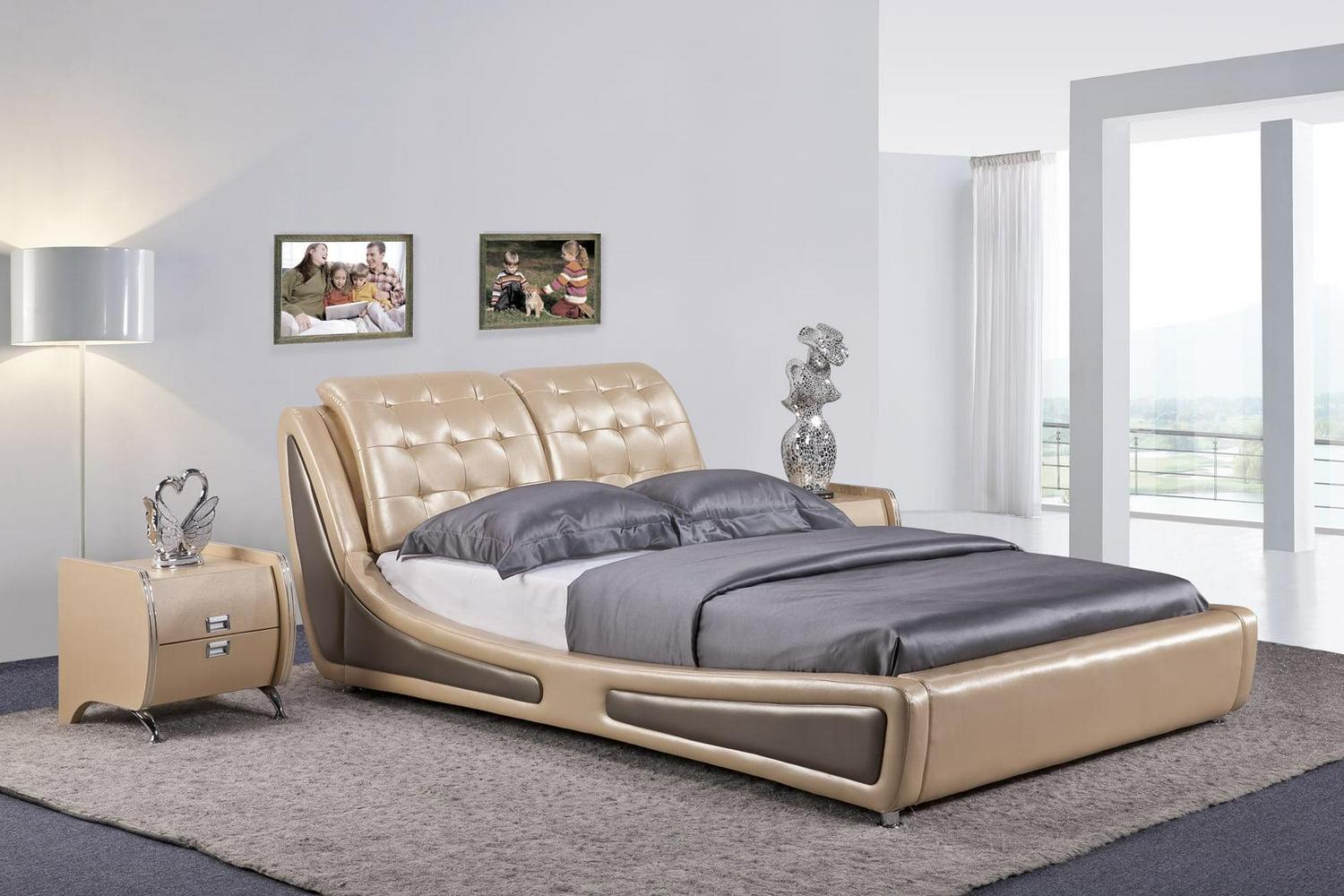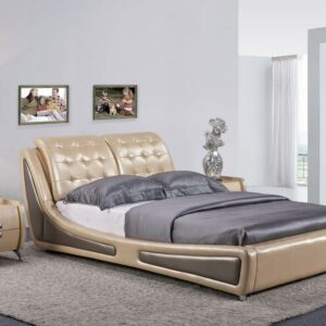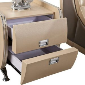 US Pride Furniture Victoria 2 Drawer Faux Leather Nightstand, Gold, B8047-NS