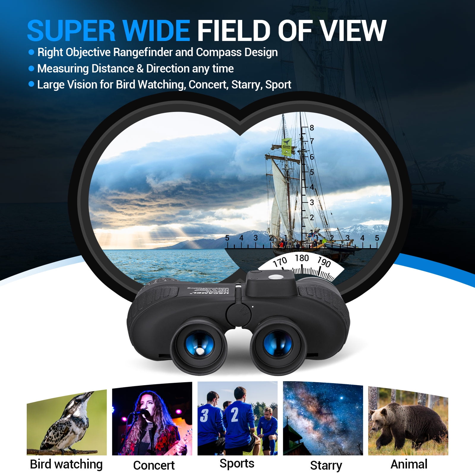 【Fogproof Dustproof Waterproof Binoculars】The Marine Binoculars come with nitrogen-filled waterproof design. O-ring sealed for complete waterproof and float on water so no worries if dropped into the water. Dry nitrogen-purged and sealed thermal Binoculars to prevent moisture damage in all weather conditions, necessary boating equipment.