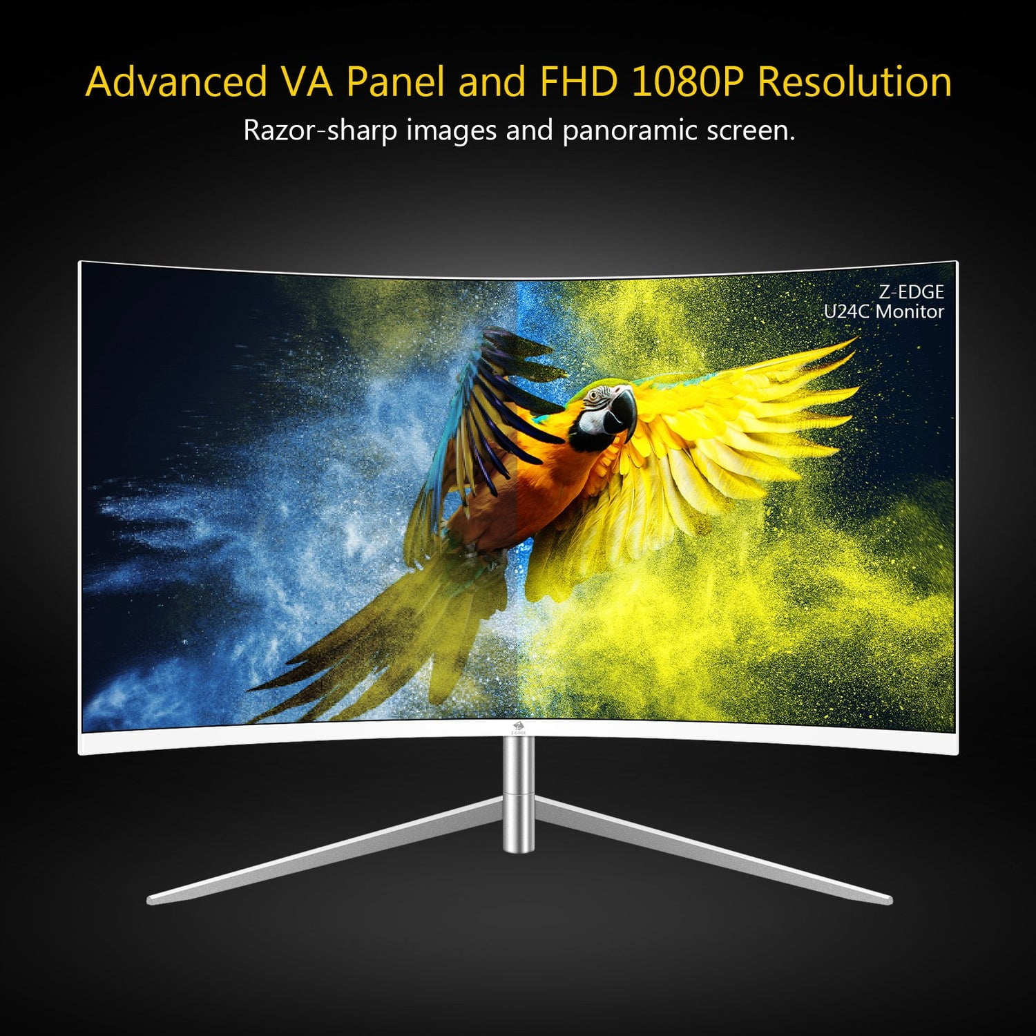 Used: Z-Edge 24-inch Curved Monitor Full HD LED Monitor Please note: It is a used product, the device and accessories may have traces of previous use, do not buy if you mind. 24-inch Curved Monitor Wrapping around your vision like the theater screen, this 24 inch curved monitor covers a wider field of the view, enhances the depth of the perception. The monitor offers you the maximum immersion whether you watch the movies or play casual games, the monitor will fully engage you in all your content. FHD 1080P Resolution With 1920×1080 resolution, this curved monitor delivers you with the vivid and stunning images, presenting videos or pictures with more details. Advanced VA Panel Thanks to the high-end VA panel, the monitor enlarges the viewing angle to a greater extend, providing the 178°panoramic viewing angel. The 3000:1 contrast ratio provides richer colors, allowing you to capture more image details. 75Hz Refresh Rate and 5ms Response Time The 75Hz refresh rate provides smooth video, good choice for watching videos, catching up on favorite TV drama and casual gaming. 5ms response time helps prevent streaking, blurring and ghosting, during intense action scenes in video games and movies. Three-sided Ultra-slim Bezels Design Ultra-slim bezels design makes full use of the screen, brings the modern and sleek look to this streamlined monitor. Eye-Care Tech Flicker-free and low blue light technology minimizes blue light to protect your eyes from strained after the prolonged use of the monitor. Multiple Ports Support The monitor has not only the traditional VGA port, but also an additional HDMI port, ensuring that you can easily connect the monitor to a TV or other devices. Built-in Speakers Built-in two speakers, the monitor affords the surrounded sound, you can add your own speaker or the headphones via the 3.5 mm audio jack. Note 1. VGA port does not support audio transmission; 2. Support VESA mount 75*75mm, additional spacers are required(Not included)