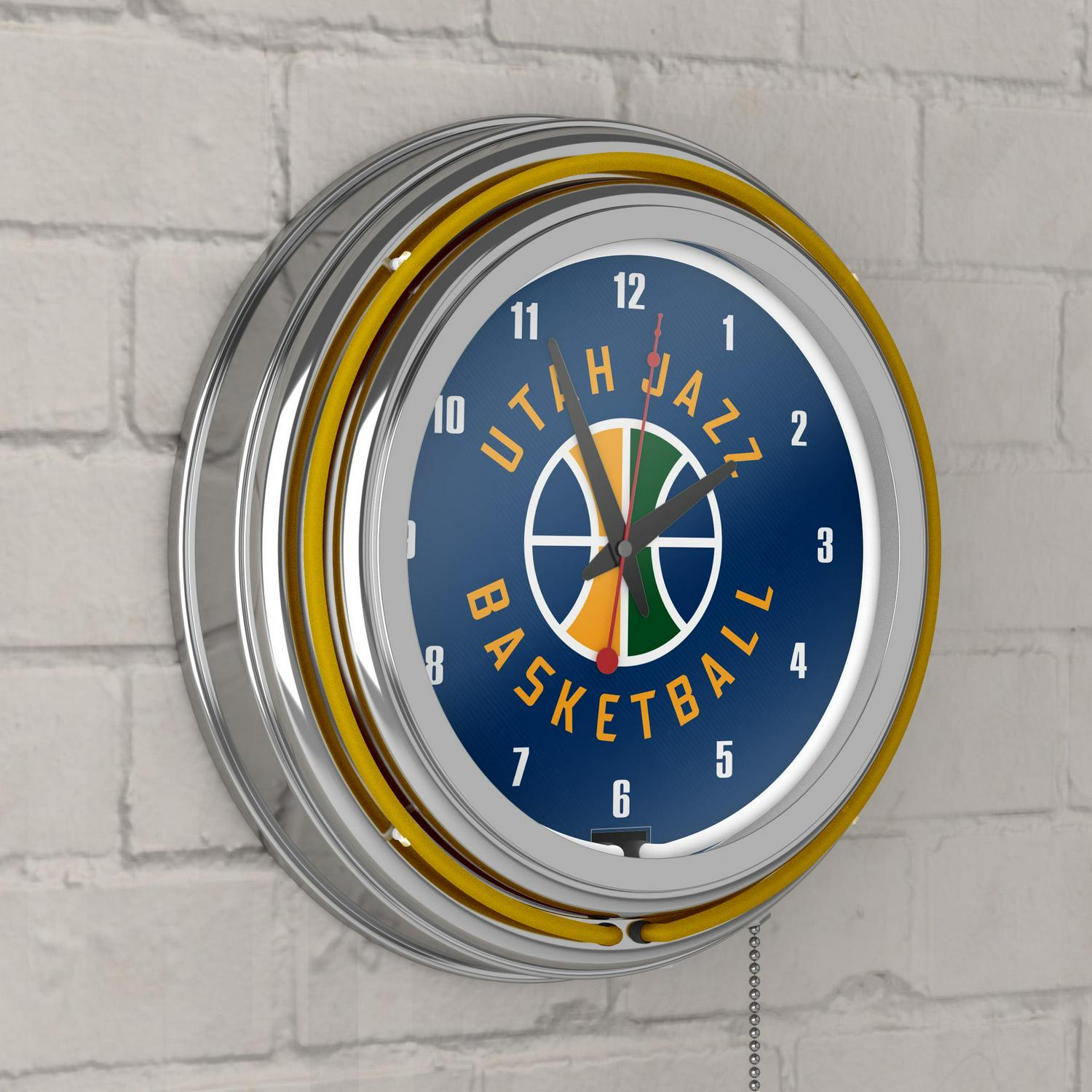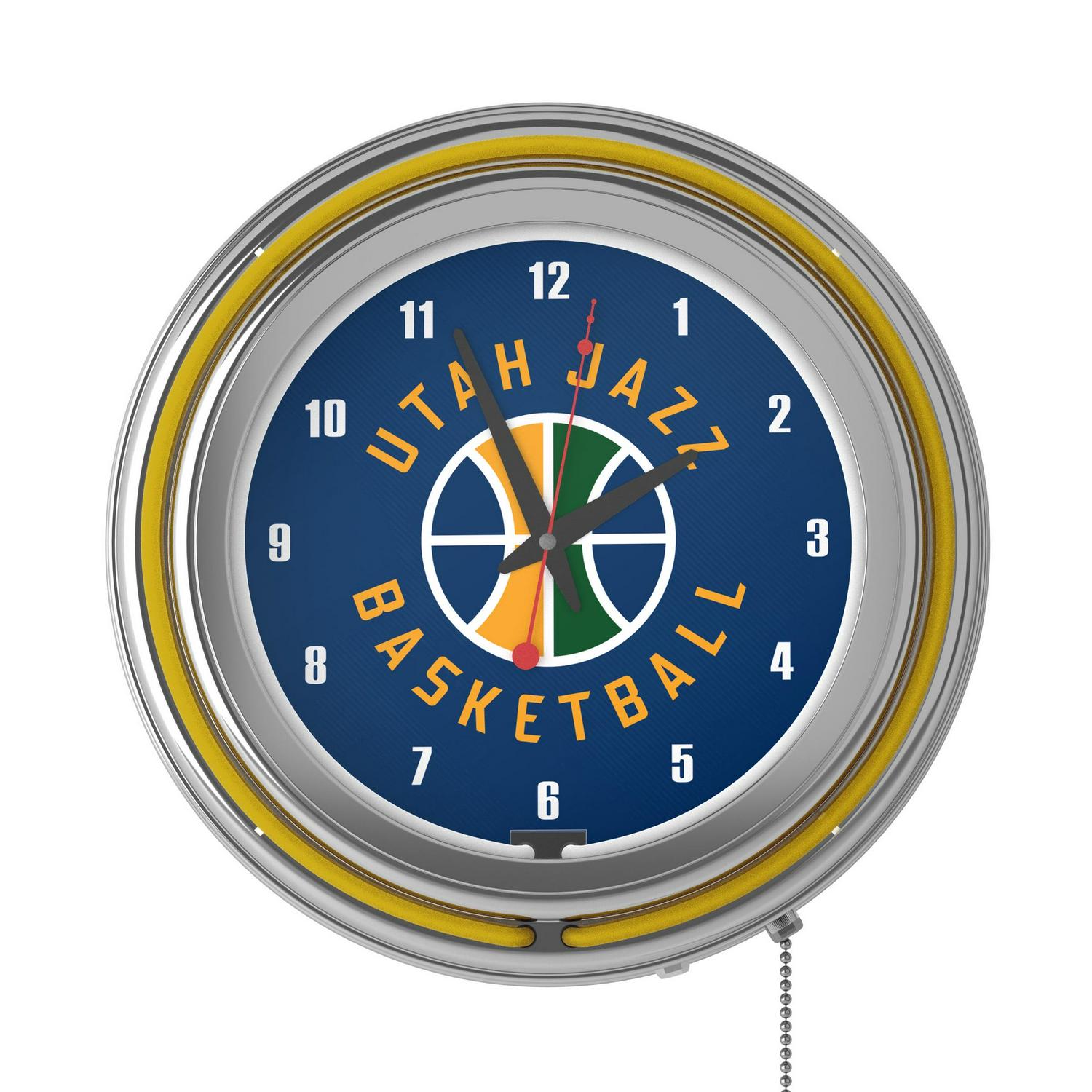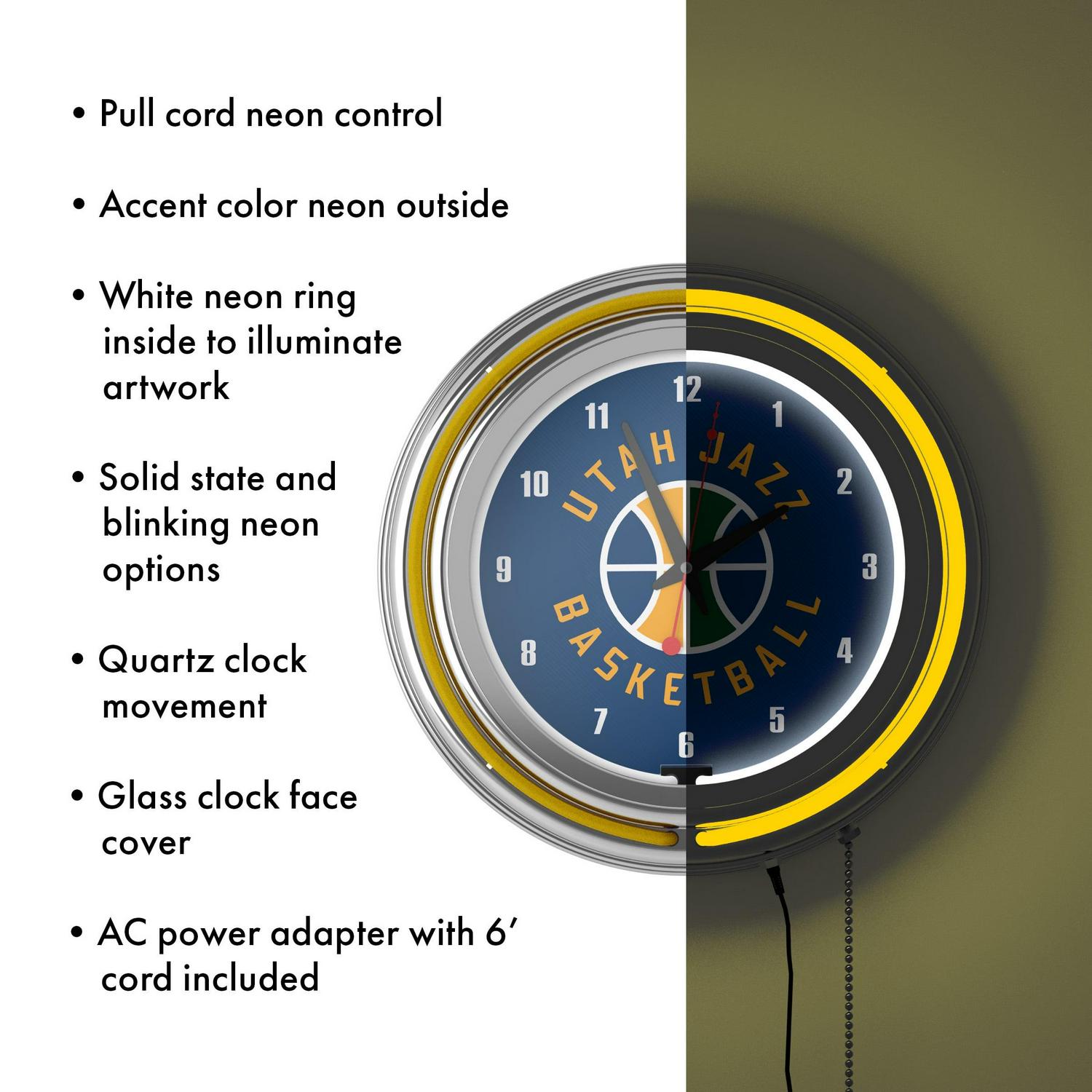 Utah Jazz NBA Chrome Double Ring Neon Clock
