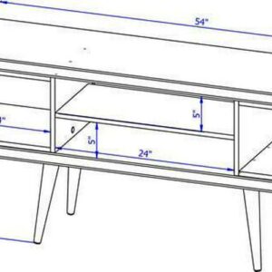 Free Standing TV Stand for Living Room and Bedroom use. * Upon Assembly, Measures: 53.14 in. Length, 24.01 in. Height, 14.02 in. Depth. * Recommended for a 50″ TV. * Ample Storage Space with Media Holes for Wire Management. * Includes 2 Center Shelves and 2 Large Open Side Compartments. * Fashionable Splayed Legs made from Solid Wood for Extra Durability. * Classy Sleek Design to Enhance your Living Environment * Home Assembly Required. All Hardware Included.