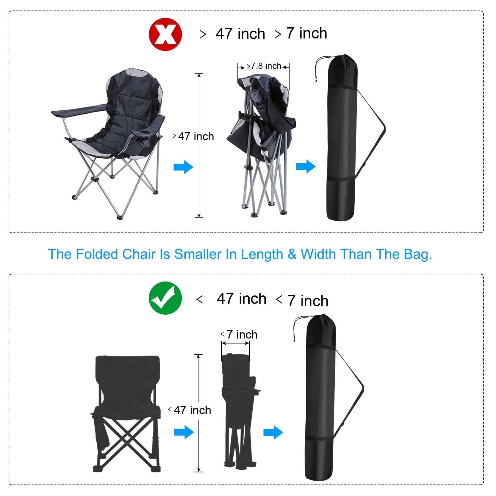 Uxcell 46 Inch Camp Chair Replacement Bag Oxford Folding Chair Carrying Bag with Strap for Outdoor Color: Black Material: 210D Oxford Cloth Overall Length: 120 cm/ 47 inch Bottom Diameter: 18cm/ 7 inch Packing List: 1 x Camping chair replacement bag