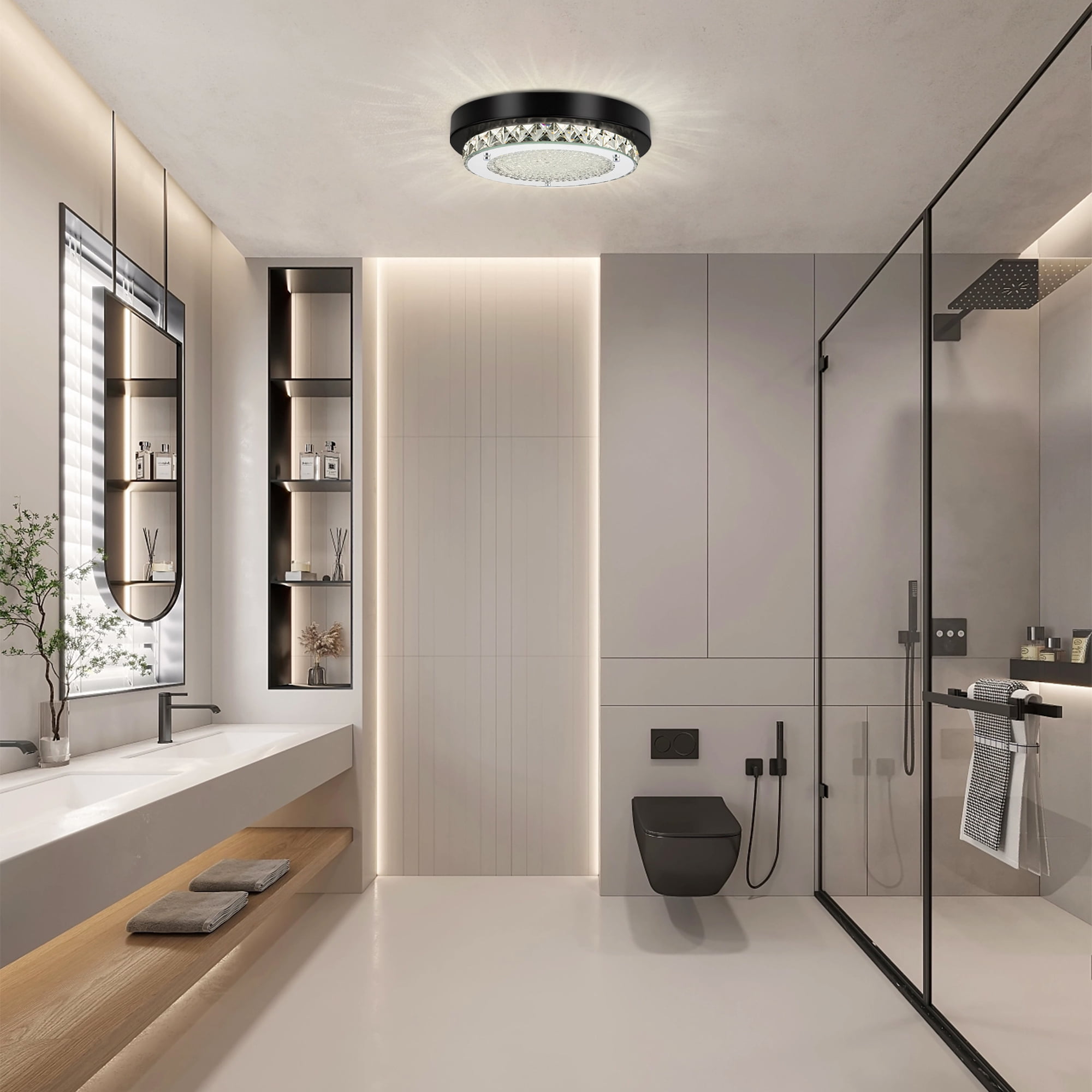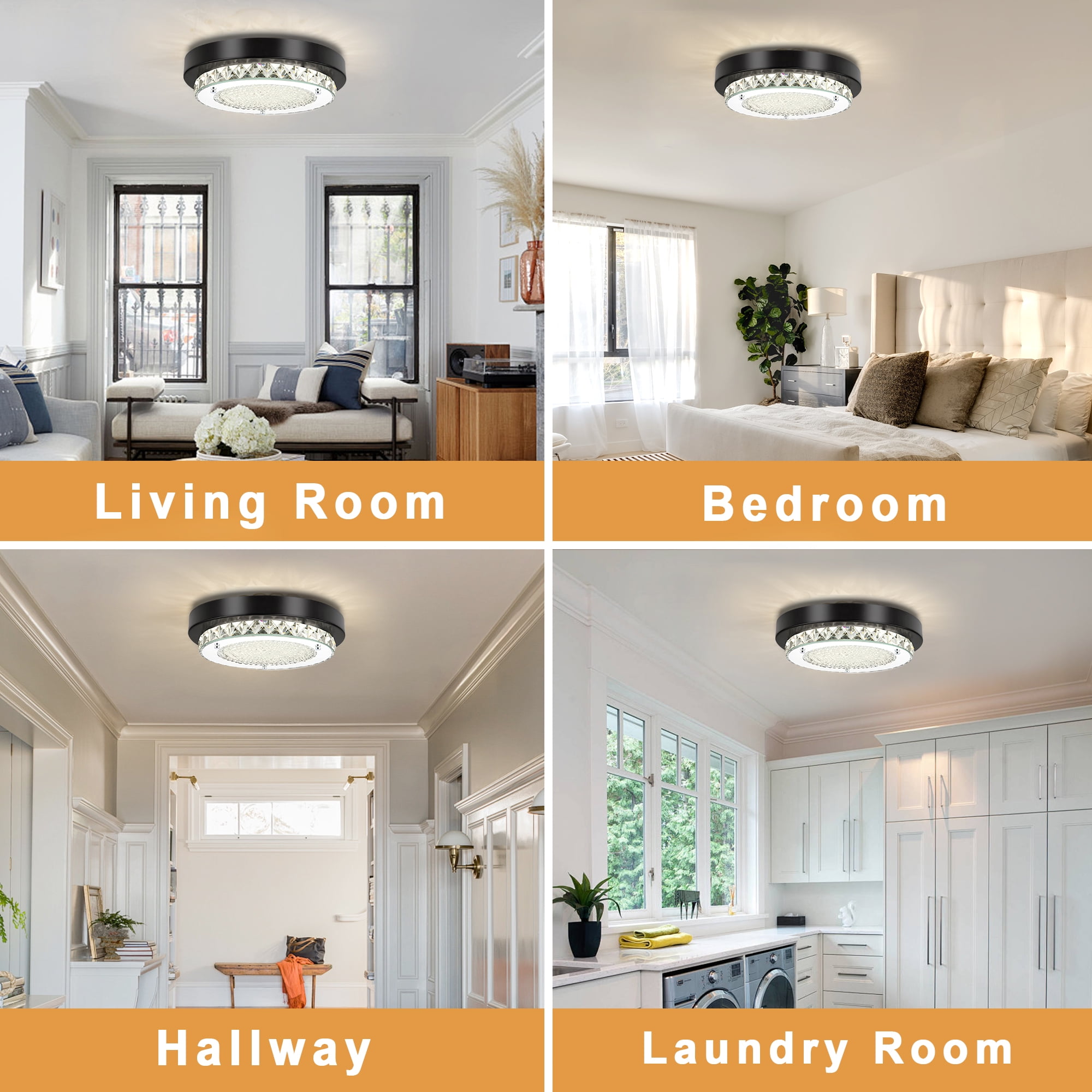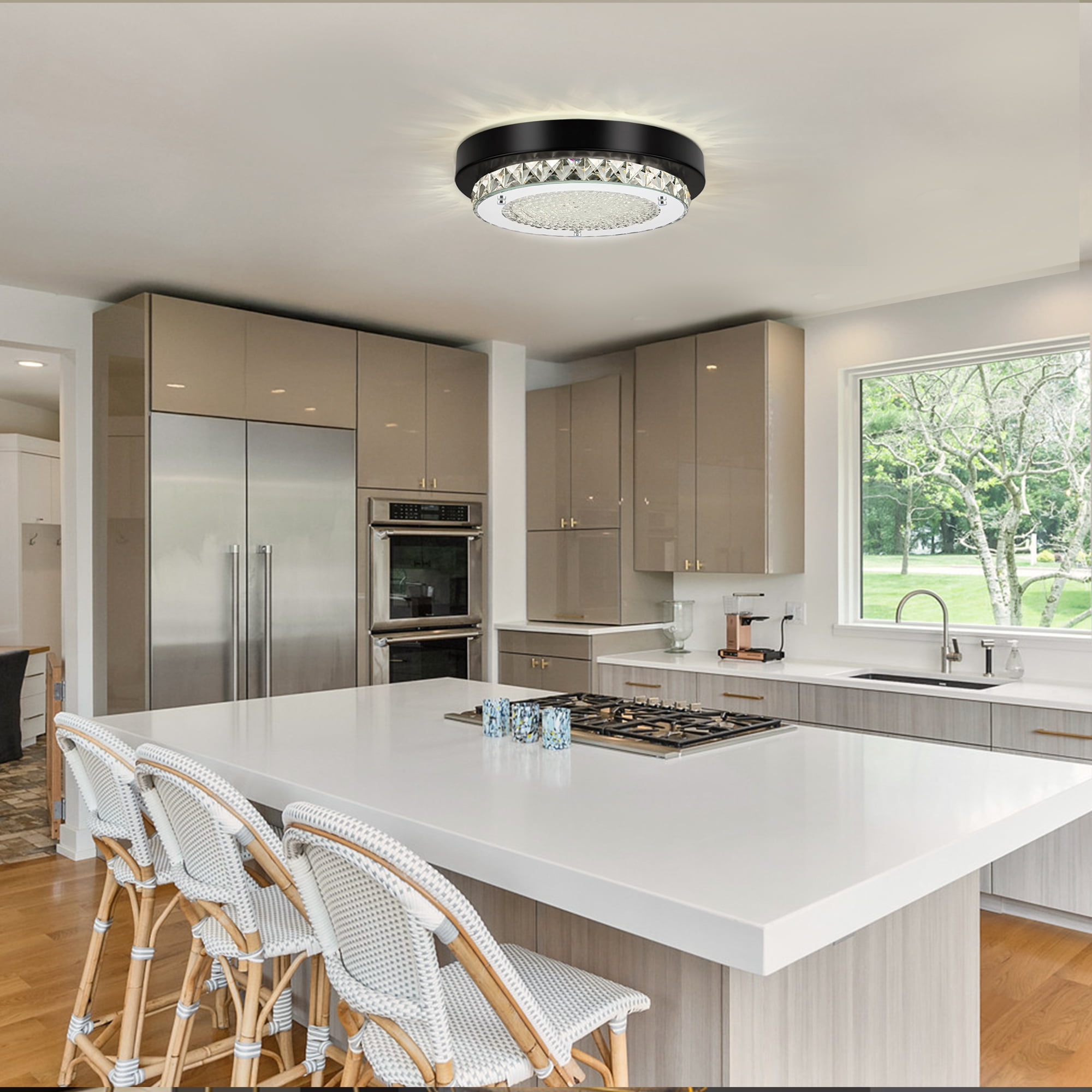 Uznhty Black Ceiling Light Fixture 9.8 Inch Crystal Ceiling Light LED Kitchen Lighting Fixtures Ceiling for Hallway Laundry Room 4000K Dimmable 12W