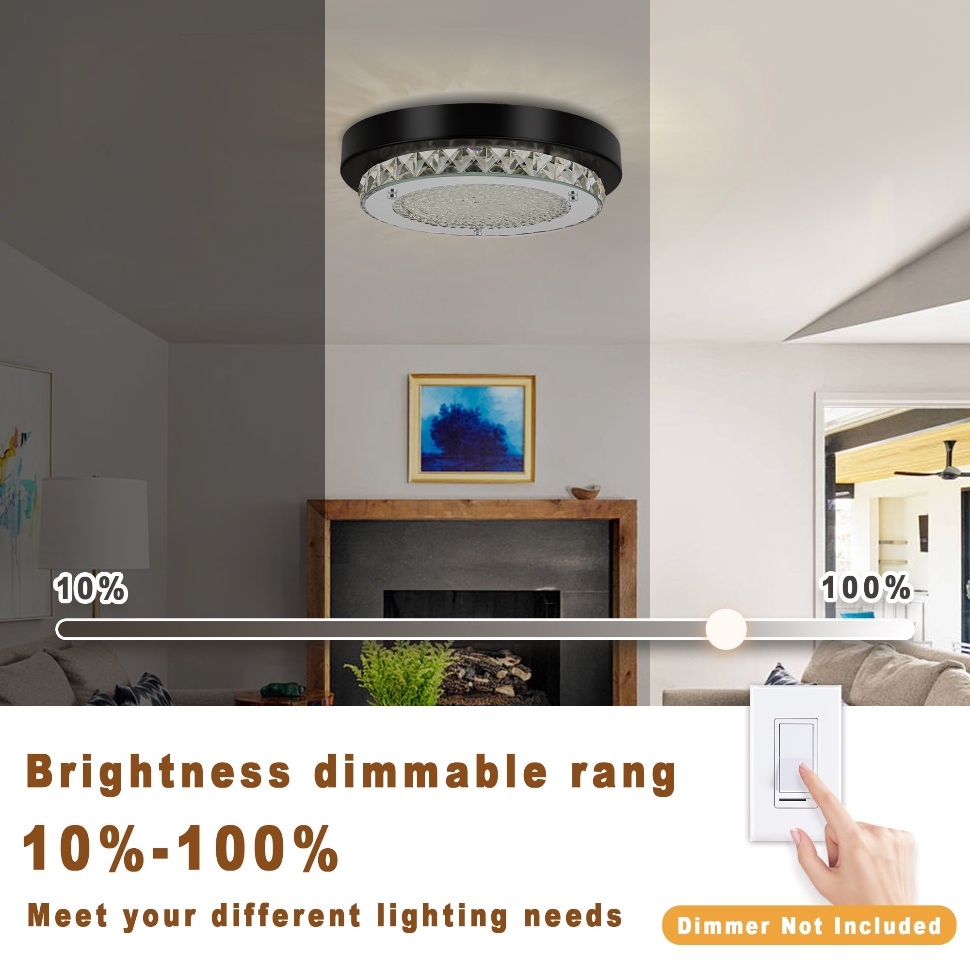 Why you should choose Uznhty flush mount ceiling light? ①The ceiling light fixture features an embedded bracket with energy-efficient small LED chip light source, mirror glass, and K9 crystal beads. Kitchen light fixtures is made with a 4000K LED 12W that is compatible with a dimmer switch in matte black, It finish the perfect blend of modern style and elegance. ②The flush mount light fixture is suitable for any location, such as dining rooms, bedroom, living room, hallways, laundry room and entrances.