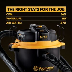 Vacmaster VJH1211PF0201 12 Gallon, 5.5 HP Professional Wet/Dry Vacuum, Beast Series