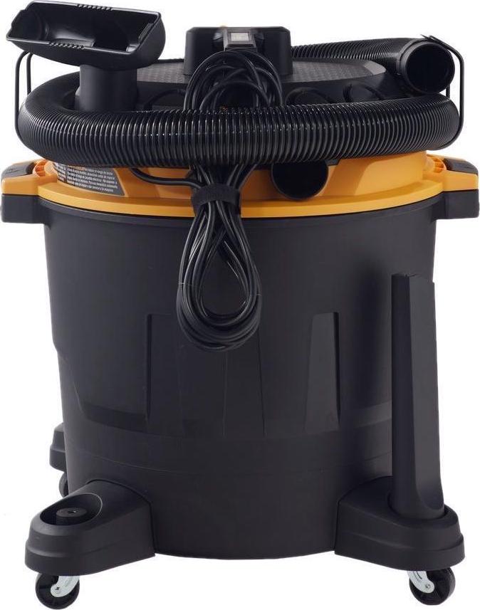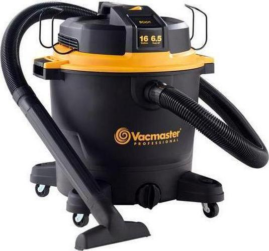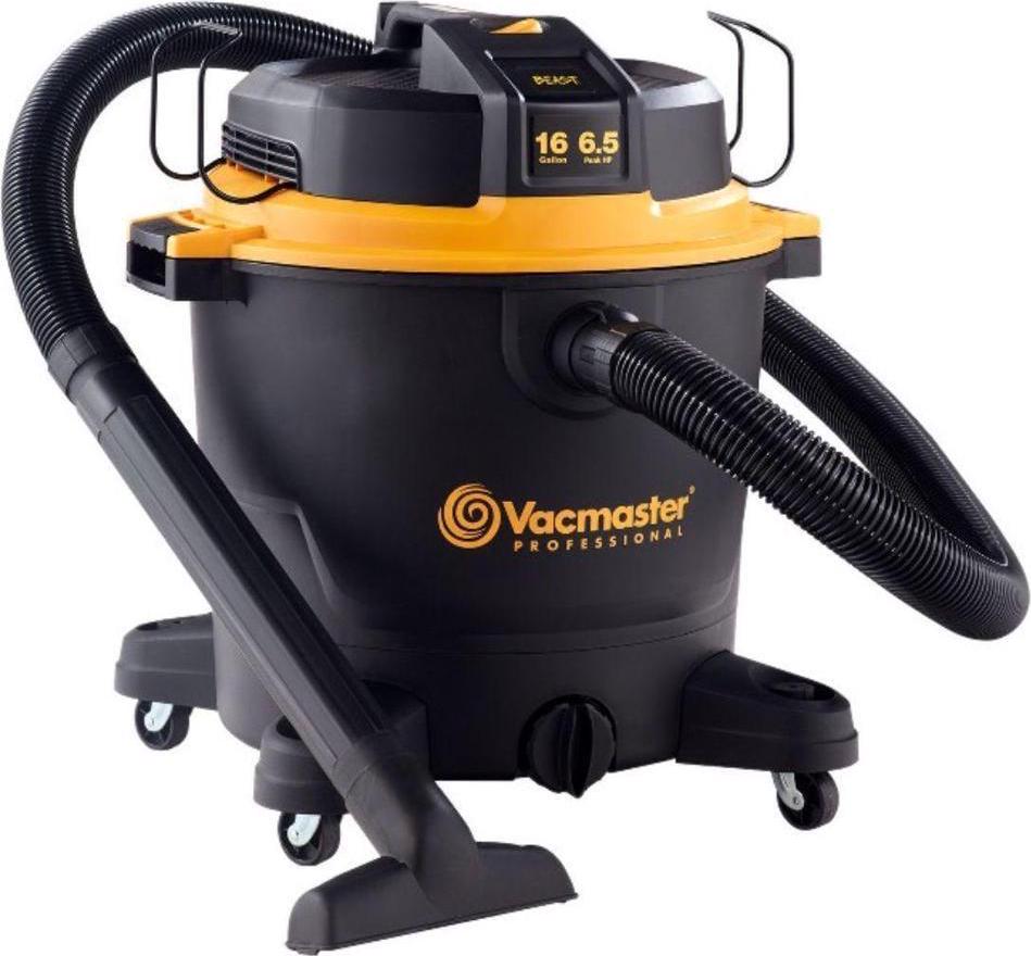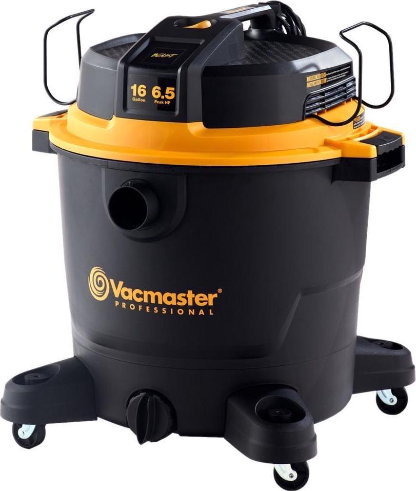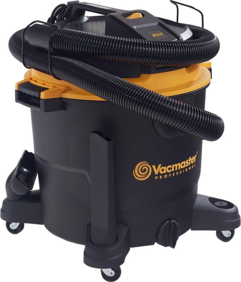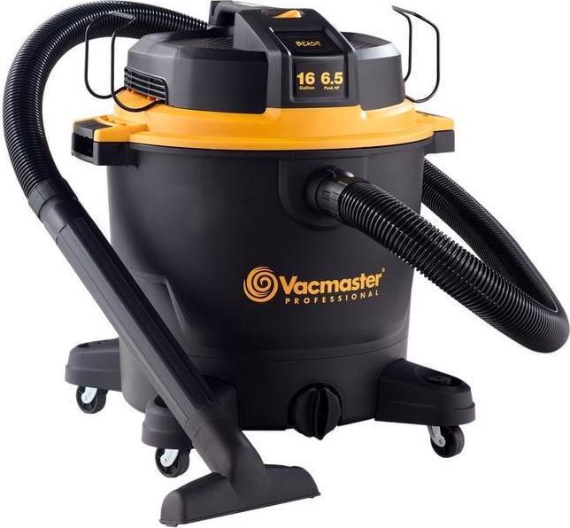 This Vacmaster Professional Beast Series 16-Gallon 6.5 Peak HP Wet/Dry Vac is a powerful high-performance vac designed to tackle the toughest cleanup projects-at the jobsite, around the shop, or in the garage.On-board hose, accessory, and power cord storage eliminates unneeded hassle and minimizes total storage space. A unique flat power head design allows you to conveniently store tools on top of the vacuum so they are easily accessible when needed. Over 28 ft. of cleaning reach (7 hose, 18 power cord, and two 18″ extension wands) allows you to reach farther without unplugging the unit. Quickly control the power with the large dust sealed on/off switch. Heavy duty 360° swivel casters improve mobility on most surfaces. It also includes 9 accessories for nearly any task: 7 ft. x 2-1/2 in. kink resistant premium hose, utility nozzle, crevice tool, (2) extension wands, floor nozzle with squeegee & brush, fine dust cartridge filter, foam wet filter, and air & noise diffuser.