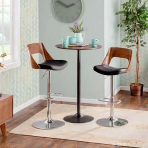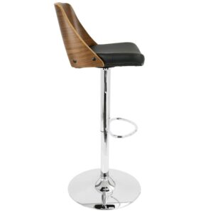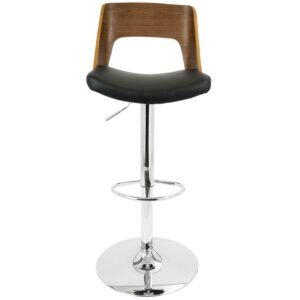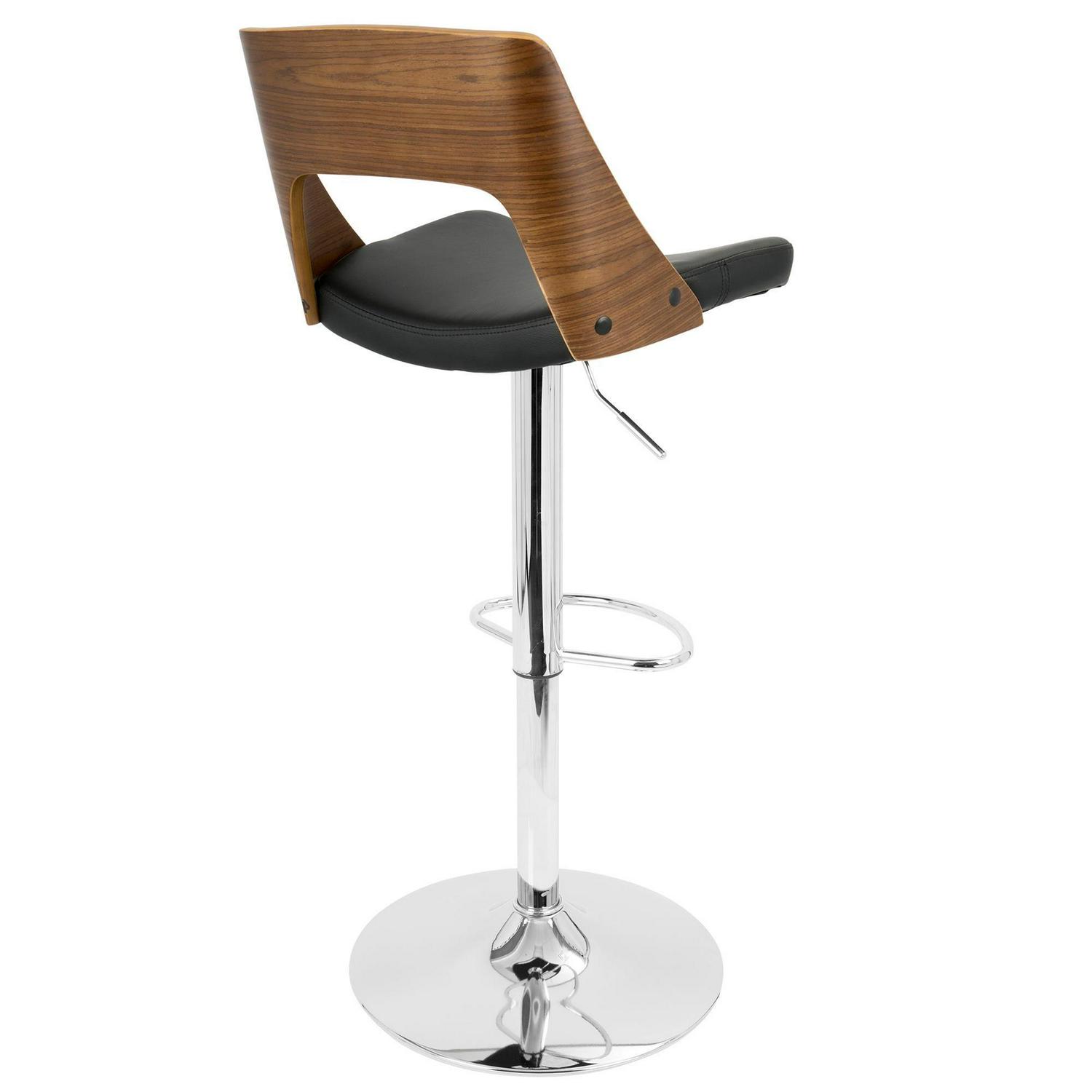 Valencia Mid-Century Modern Adjustable Barstool with Swivel in Walnut and Black Faux Leather by LumiSource