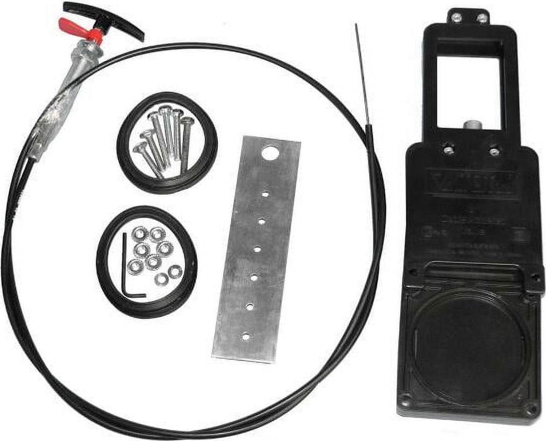 Valterra’s Flexible Cable Kit allows for waste valve placement in protected locations, with a folding handle for easy bulk head installation. Includes 72″ stainless steel wire and a 3″ valve.