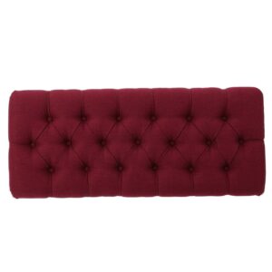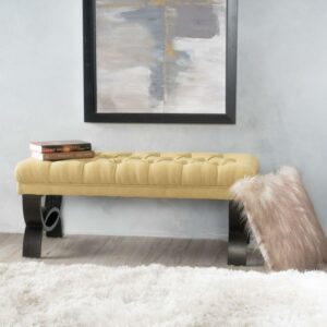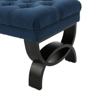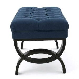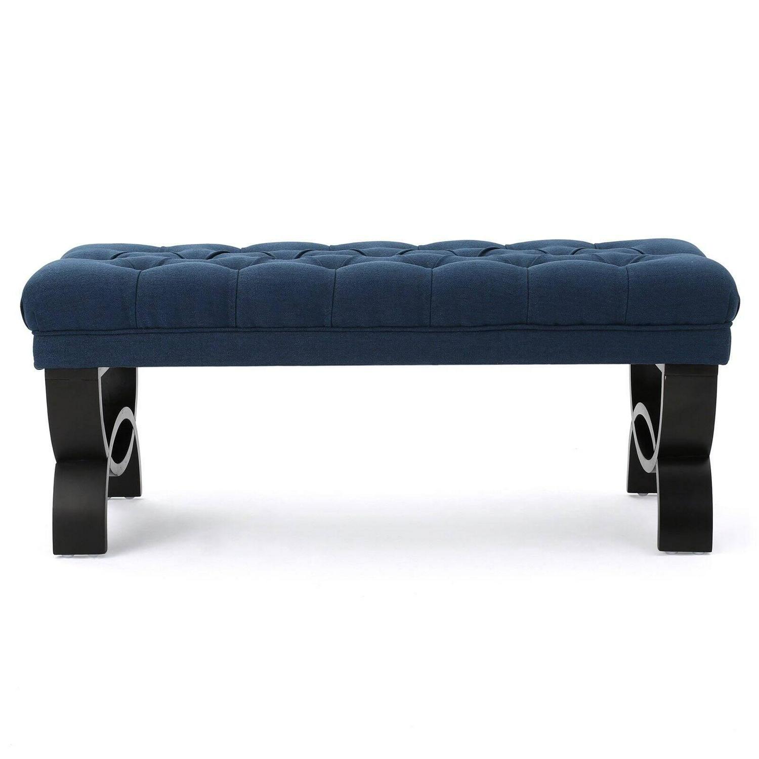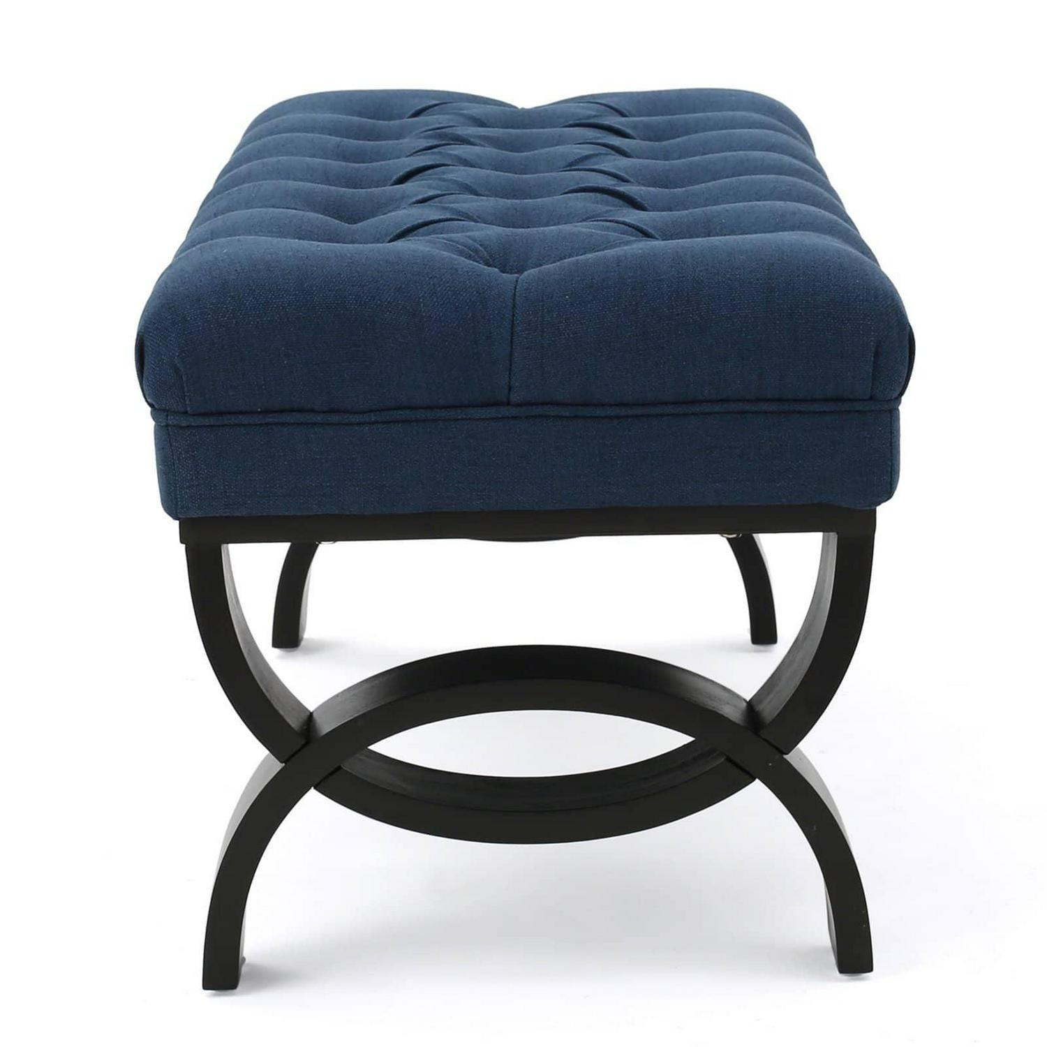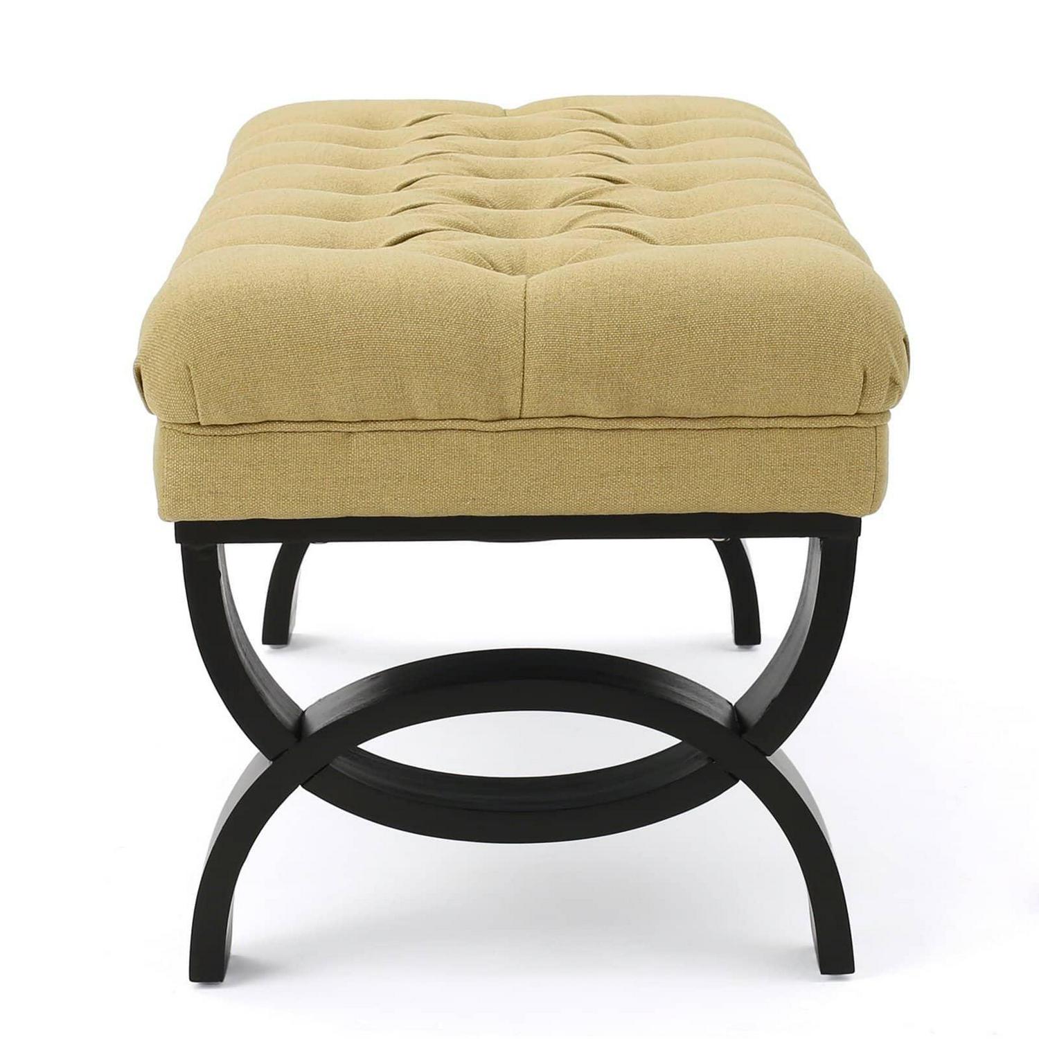 Like a modern work of art, the Vancouver Fabric Ottoman Bench brings unique style into your home. This visually striking bench is enhanced with thick crossed legs made of wood in an espresso finish that gives it a uniquely contemporary shape. The thick cushioned top is covered in soft fabric upholstery with your choice of available color and features deep button tufting for added flair.