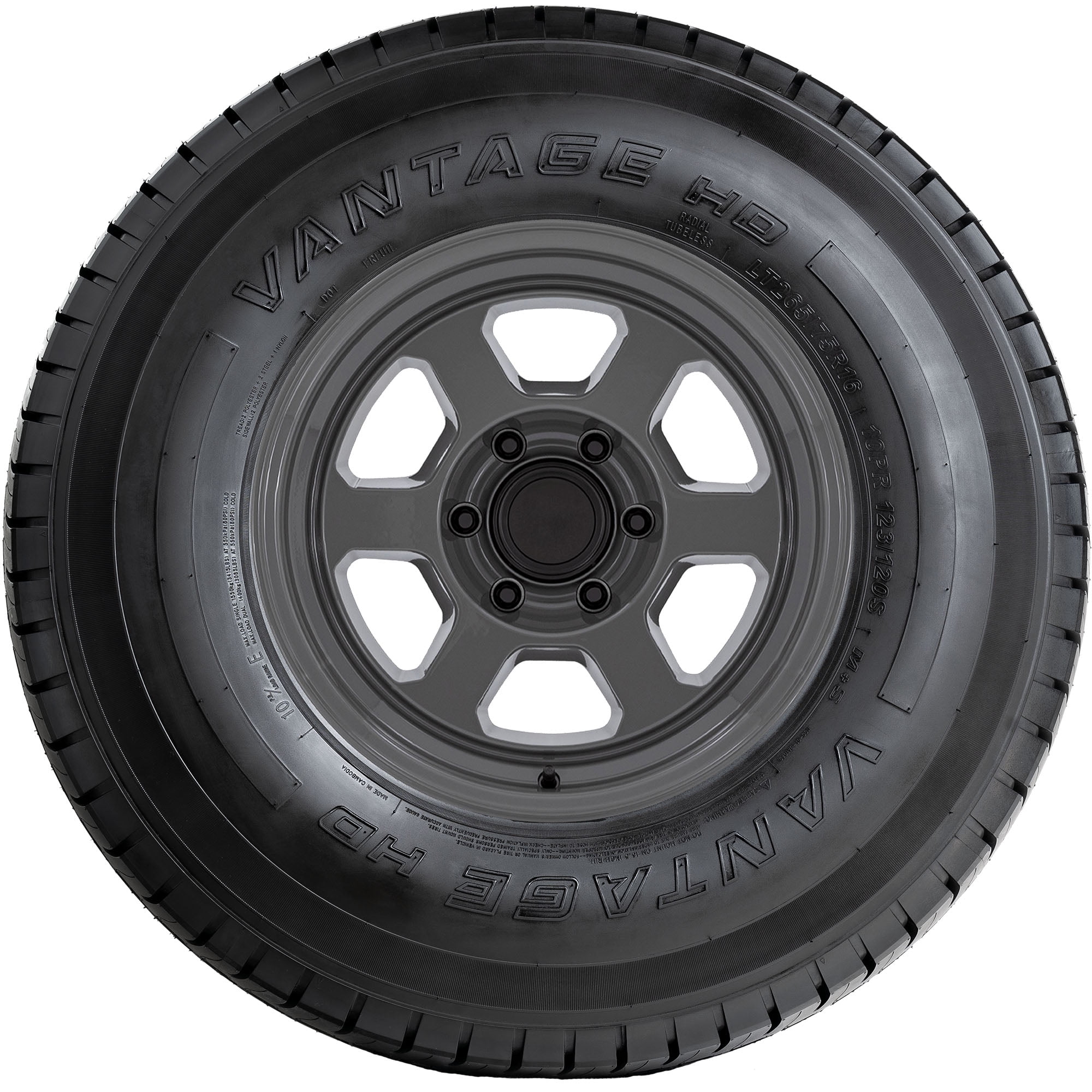 Vantage LT HD LT265/70R17 121/118S E OVERVIEW The Vantage LT HD is a commercial grade tire for light trucks, and is designed with a heavy-duty rubber compound, reinforced construction for enhanced load rating, solid center rib for good stability, and all-season tread design with deep grooves and a solid shoulder for great handling.
