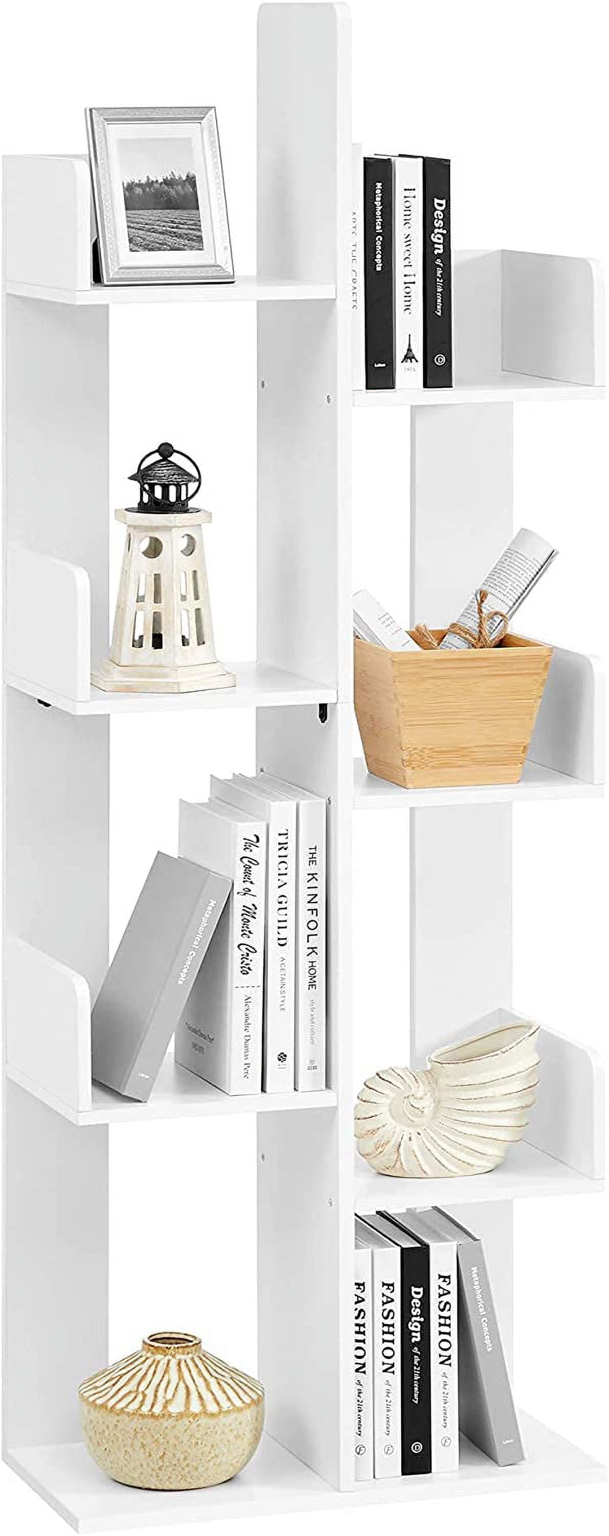 Bookcase Tree-Shaped Bookshelf with 8 Storage Shelves Rounded Corners 19.7 x 9.8 x 55.1 Inches White