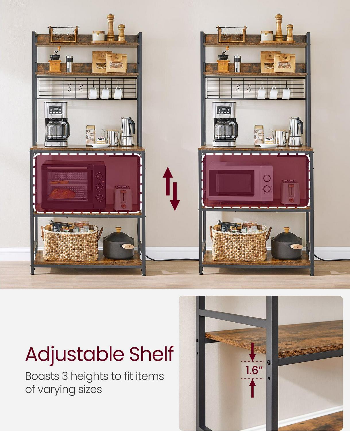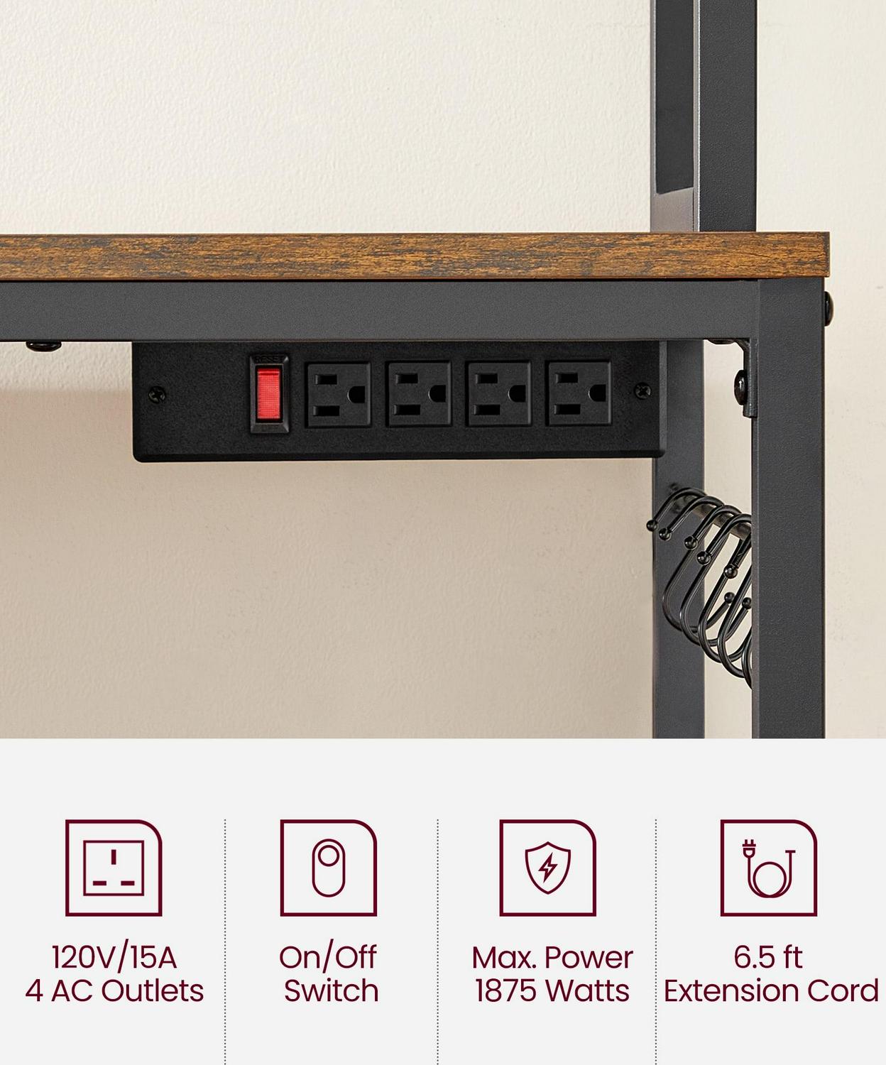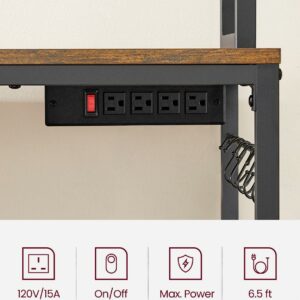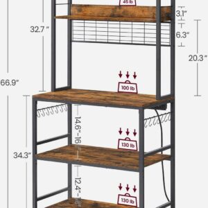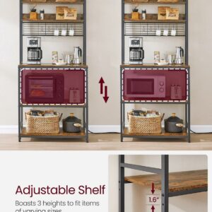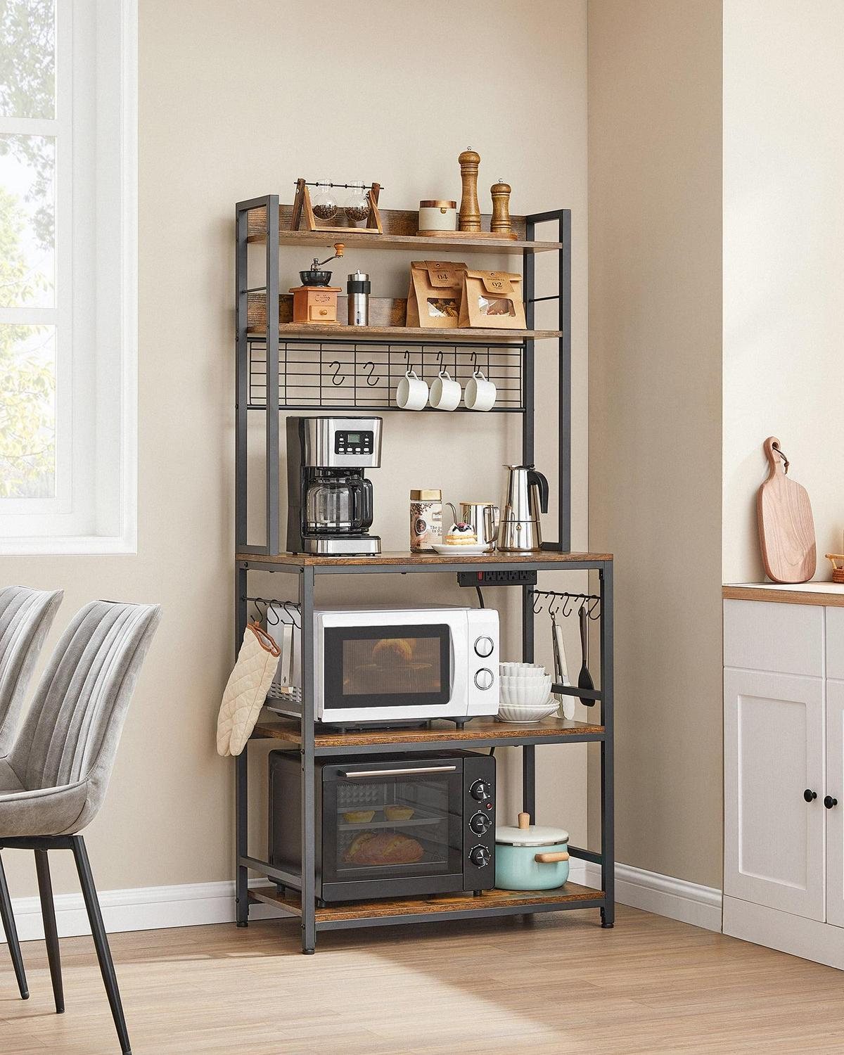 VASAGLE Kitchen Bakers Rack Storage Shelf with Power Outlet 66.59′ H Rustic Brown and Black