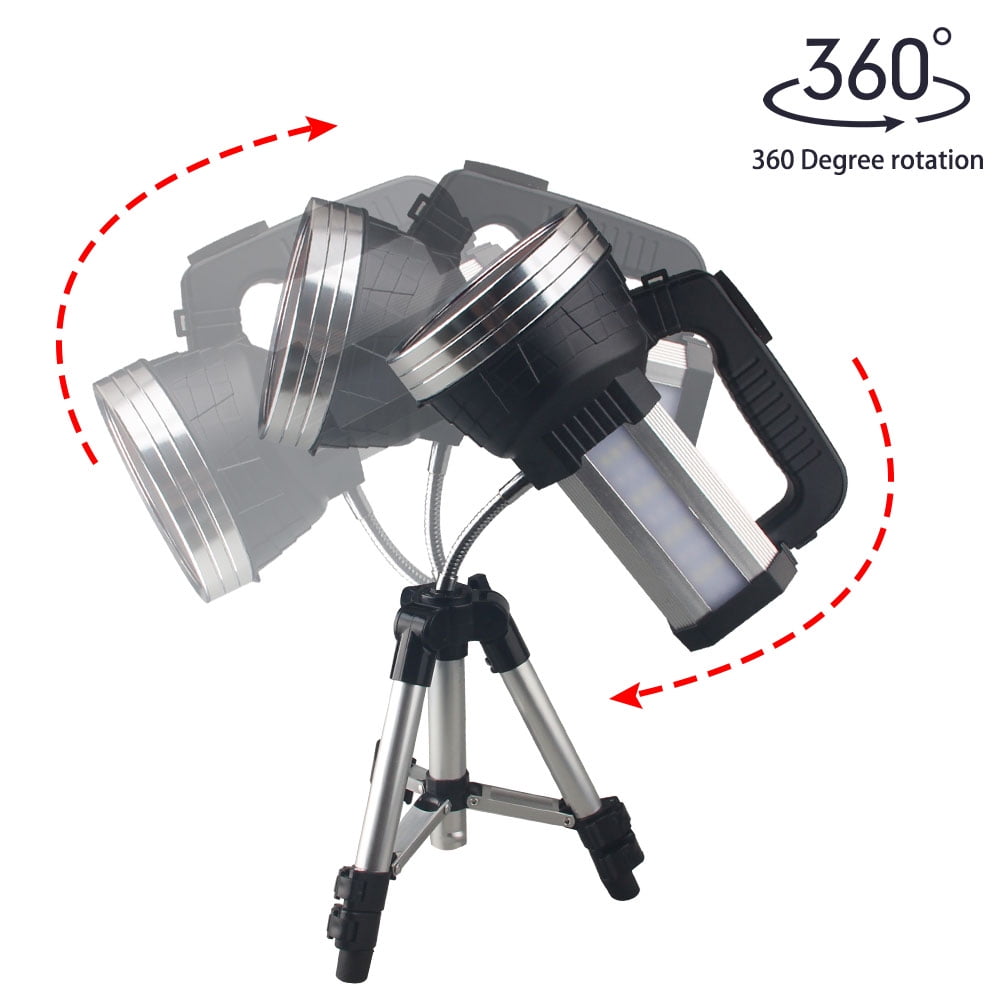 Vastfire 10000 lumens ultra-bright portable spotlight an upgraded vision of the market similar appearance’ spot light, higher lumens and bigger capacity power pack, longer runtime to 10 hours. most powerful flashlight utilizes xhp90.2 led, max beam distance 1870feet(570 meters).the searchlight can easily light up a football field, with table lamp and power bank function, best for emergency lighting, fishing,camping, excursion,exploration, search and rescue, hiking. Easy carry shoulder strap, green red lens, and tripod are included Vastfire Best hunting spotlight with Red & Green filters for shining deer, Predator Spotlights (Best Coyote Hunting Lights) to brighten up the entire field, light the way as you search for firewood, scare away predators from camp, ultimate long throw flashlight for long distance game viewing, best spotlight to locate the hunt at a marginal distance, hunting flashlight to track wounded animals through the night or go searching for a lost hunter Super Bright LED Rechargeable Spotlight Flashlight Color temperature 5000K(Neutral White), High-efficiency constant current circuit will maintain constant brightness, Multiple Safety Protection: Advanced Intelligent Thermal Protection System, protects LED and components, is safe and reliable, and increases user comfort. Aluminum alloy body, wear-resistant Type III hard-anodized surface, 1-meter impact resistance and IPX7 waterproof rating, IPX7 means it can be washed with water from all angles and soaked for a short time. suitable for outdoor activities in light rain or snow Multi-functional high-end outdoor camping flashlight with 3 strong light modes: Brightest, Bright, and strobe, Two brightness settings offer you the flexibility to choose the optimum brightness settings according to the nature of the work, well suited for outdoor rescue, patrol, travel, night walking, fishing, hunting, etc. Built-in large capacity power, can be used as a portable charger, power bank or a mobile power source. 3 hours get a full charge by the USB-C charging cable, saving your time, never be absent in duty, very convenient, never worry about the surrounding darkness, you can immediately take it with your family to travel happily together USB C rechargable handheld spot light with table lamp function:100 lumens foldable side lamp, 150°adjustable light angle, soft reading light, reduce eye strain. It can also be your night light, work light. The additional bright COB light that is suitable for reading, camping, car repairing and other activities, Ultra bright flashlight lantern combo with red light specially designed for outdoor application,the red flashing light feature is very useful for calling for help or alerting people if your car breaks down or runs out of power. Easy Carry Shoulder Strap Handheld Headlamp Carry With Shoulder Straps To Free Your Hand, Front Headlights illuminate long range, Make it a good flashlight for walking dogs, outdoor camping, hunting, boating The pistol-styled grip of this spotlight is super comfortable to hold, and use. very easy to carry around. In addition, there is also the tripod-stand that comes in very handy for hands-free operation. can be directly mounted to a tripod, turning it into a camp light or a fixed supplementary light, and stands for hands-free which is the best work light for hiking, camping, sailing & hunting Handheld spotlights are an important piece of equipment in every emergency kit or camping supplies. Because of its bright lumen output and wide illumination area, they are also used in workplace or job sites at nights. They are small, portable, and light in weight so you can store and carry them around easily, Be it worksite at night, evening hike, camping, fishing, or boating, a handheld spotlight is an absolute must-have