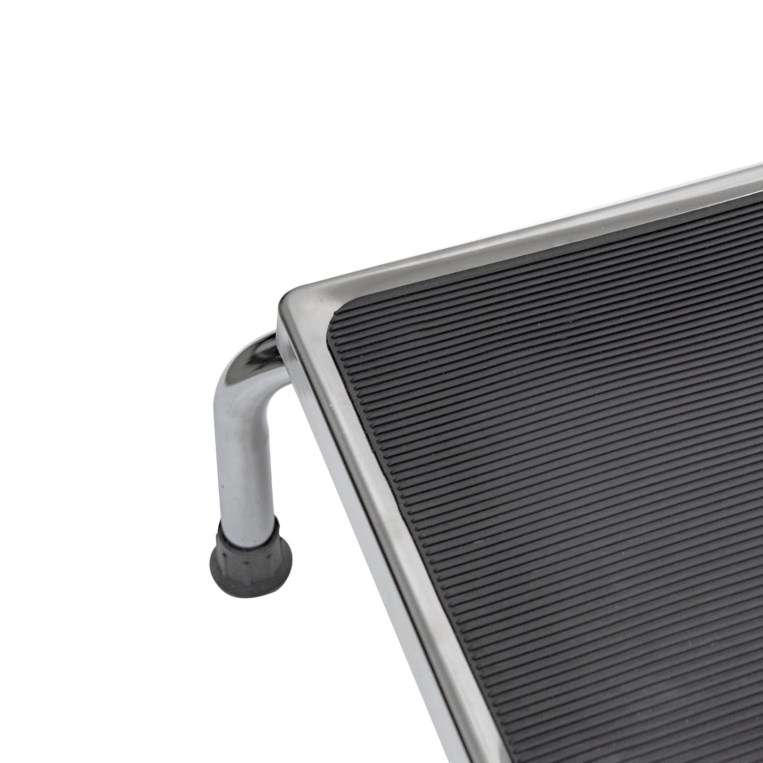 The Vaunn Medical Foot Stool is designed with one concept in mind “STABILITY”. We want a footstool that offers maximum stability and durability like no others in the market. Purchase our product with confidence. It is voted the Number 1 durable footstool by doctors and professionals. Thanks to feedback from our customers, the Vaunn Medical Foot Stool now comes with a handle for added support. It’s non-skid ribbed rubber platform and reinforced rubber feet also provides additional traction and security on any floor surfaces. Our high quality triple-layered 1-step stool chromium plating ensure that our product stays rust-resistant.