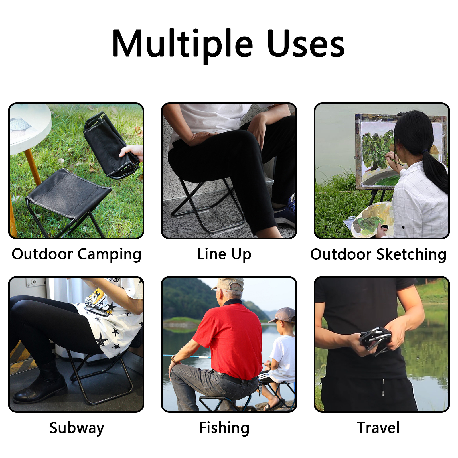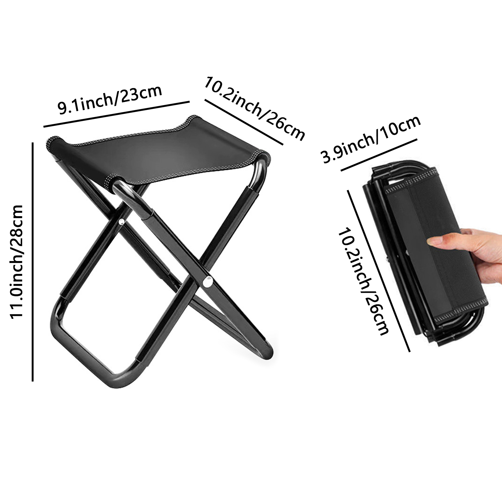 Vaupan Portable Foldable Fishing Stool, Lightweight Sturdy Telescopic Camp Chair for Adults Hiking, Collapsible Travel Footstool Suitable for Outdoor, Beach, Pond, Lawn, Picnic, with Storage Bag Specifications: Type: Folding chair Materials: Metal Unfold size: 23 x 26 x 28 cm ( L x W x H) Fold size: 10 x 26 cm ( L x W) Weight: 638 g Maximum load: 150 KG Color: Black Age group: Adult Using: Foldable Performance: Portable Number of Pcs: 1 PCS Features: -Lightweight and portable fishing foldable stool is convenient for storage. -It is lightweight and easy to move, you can easily transfer it to where you need it. -This folding stool is versatile, you can use it as a camping stool, also as an indoor stool. -The excellent production process makes it have a good texture and will not be easily damaged. -It can be folded in few seconds, easy to carry, suitable for use in various scenarios. Package Including: 1*Folding Stool 1*Storage Bag