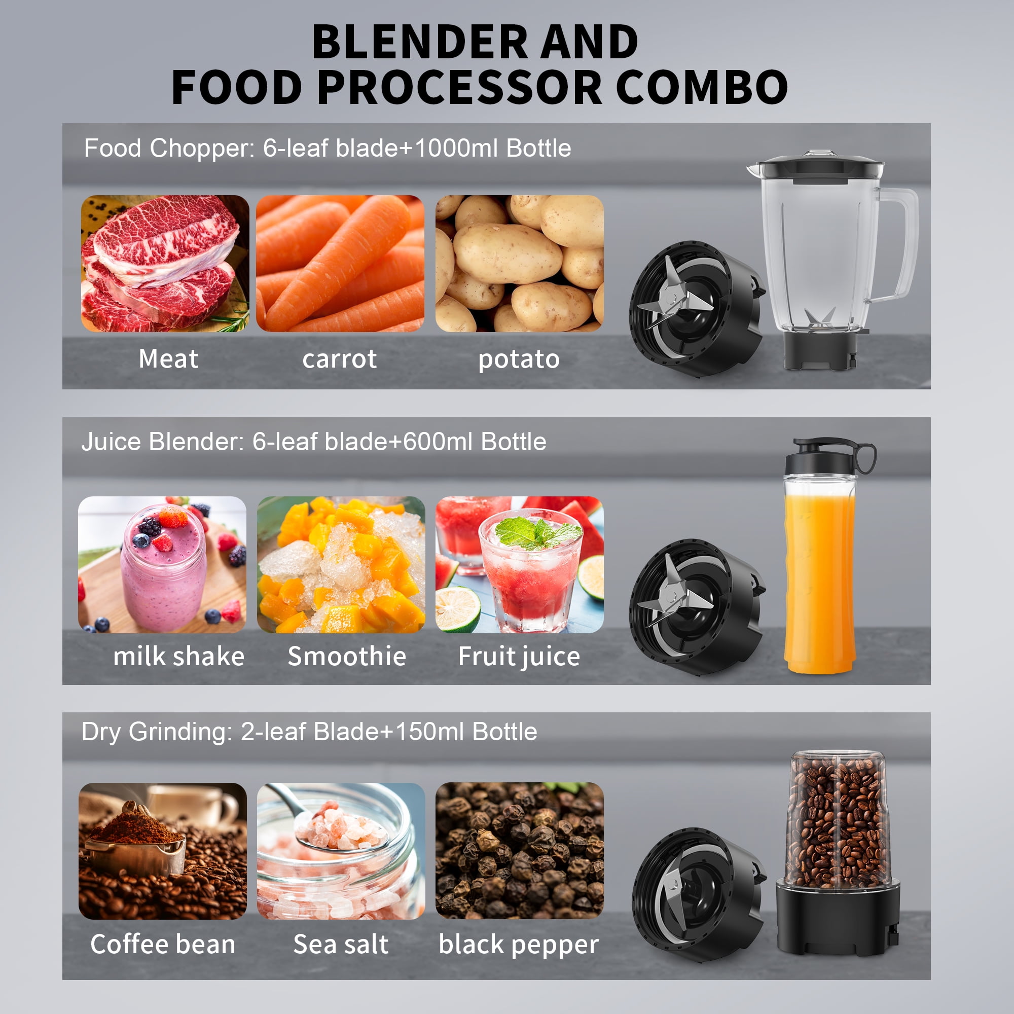 VAVSEA 3-in-1 Smoothie Blender, 1000W Blenders and Grinder Combo for Kitchen with 2 Speeds & Pulse, BPA-Free
