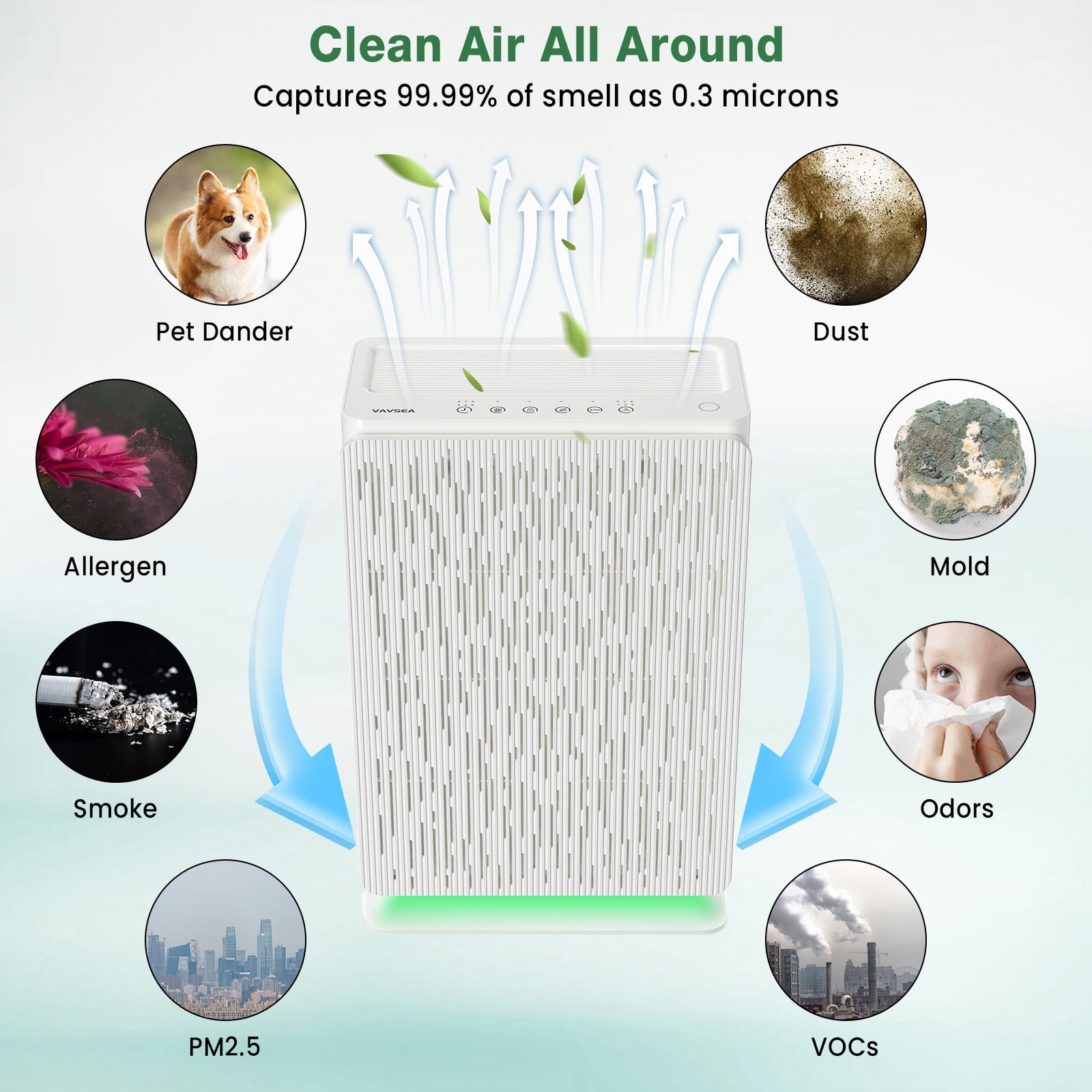 VAVSEA Air Purifier, H13 True HEPA Air Purifier Filter for Pets Hair, Pollen, Allergies, Dust, Smoke, Large Air Purifiers for Home Large Room Bedroom Up to 2042 Sq.Ft with Sleep Mode
