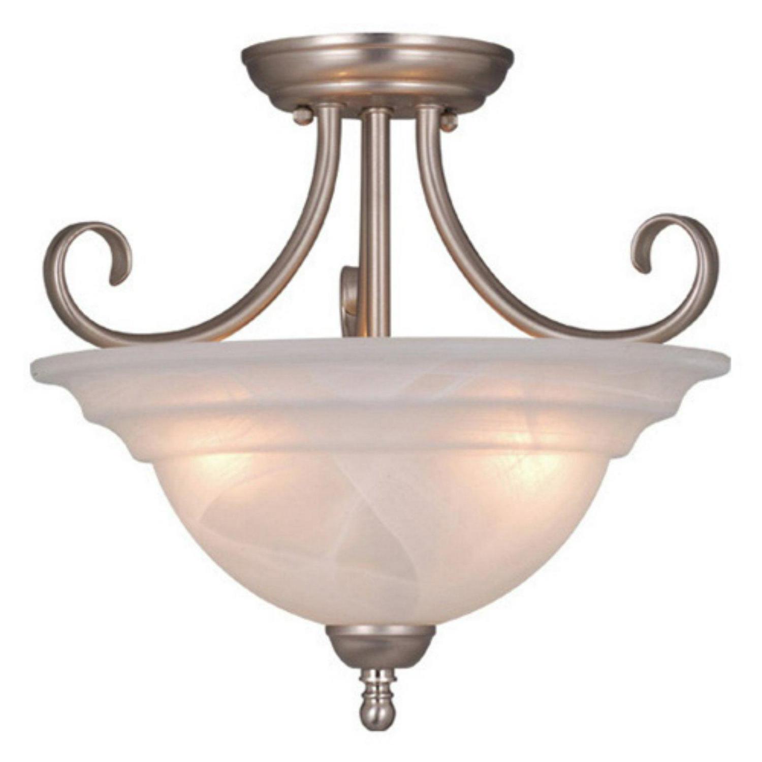 The curved arms and white alabaster glass are the key elements of this transitional collection. The well-balanced design details highlight the natural beauty of the materials and are perfectly combined to create a sophisticated, elegant statement. The Babylon collection is offered in multiple finishes. Medium screw base lamping provides maximum light output, and flexibility in bulb choice. This versatile fixture can be installed two ways; mount as a semi flush ceiling fixture or use the chain to mount as a pendant.
