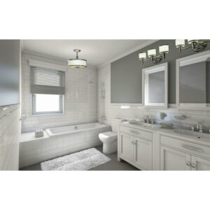 The Carlisle blends formal detailing with relaxed style for a transitional lighting collection that is sure to please. The frosted opal glass cylinders are smartly trimmed in chrome to match the rest of the fixture. This vanity is part of a full collection with coordinating pieces to decorate any room in the house. Versatile reversible mounting option lets you install this fixture up or down.