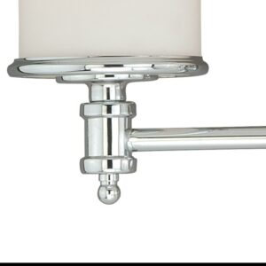 The Carlisle blends formal detailing with relaxed style for a transitional lighting collection that is sure to please. The frosted opal glass cylinders are smartly trimmed in chrome to match the rest of the fixture. This vanity is part of a full collection with coordinating pieces to decorate any room in the house. Versatile reversible mounting option lets you install this fixture up or down.