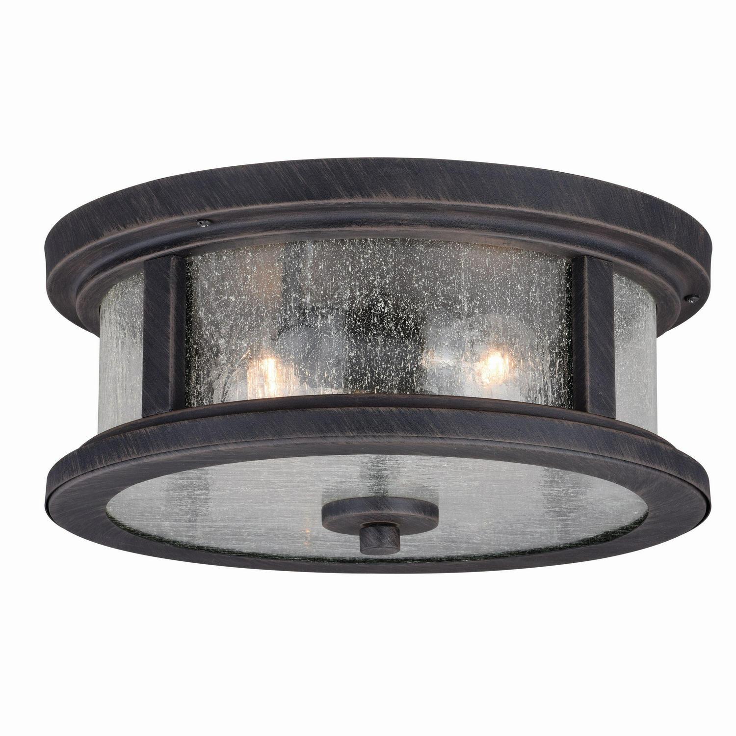 Vaxcel Cumberland Bronze Rustic Round Outdoor Flush Mount Ceiling Light Clear Glass