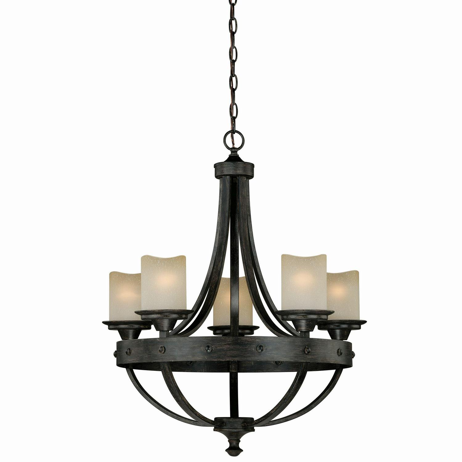 The Halifax collection features a formal yet rustic design in a black walnut finish. Its crème cognac glass shades are curved at the tops to replicate naturally melting tumbler candles. This classical shape with thick metal detailing provides a striking look when incorporated into traditional interiors. This 5-light chandelier is the perfect compliment to a dining room, formal entryway or living room. Medium screw base lamping provides maximum light output, and flexibility in bulb choice. This is a full collection with coordinating pieces to decorate any room in the house. Ideal for kitchens, dining areas, and foyers.