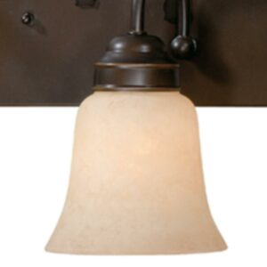Evoking the spirit of the wilderness, this rustic themed light is clad in a burnished bronze finish and features silhouetted tree imagery atop glowing amber flake glass. It is a great choice for a vacation lodge, cabin or suburban home and will complement a variety of home styles: anywhere you want to bring an element of nature. This bathroom light is perfect over large or double vanities where there is only one outlet box.